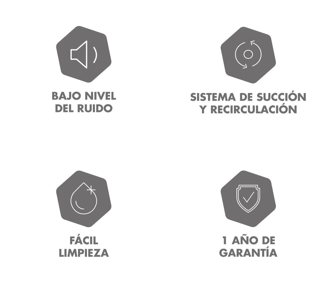 Campana horizontal Negra de 60 cm de ancho con 3 velocidades de operación. Cuenta con un filtro atrapagrasa que te ayuda a disminuir la cantidad de grasa que se adhiere a la superficie de tu cocina. Filtro de Carbón activado que minimiza considerablemente los malos olores, iluminación halógena de alto alcance. Avanzado sistema de succión que logra bajos niveles de ruido durante su funcionamiento para más comodidad mientras cocinas.