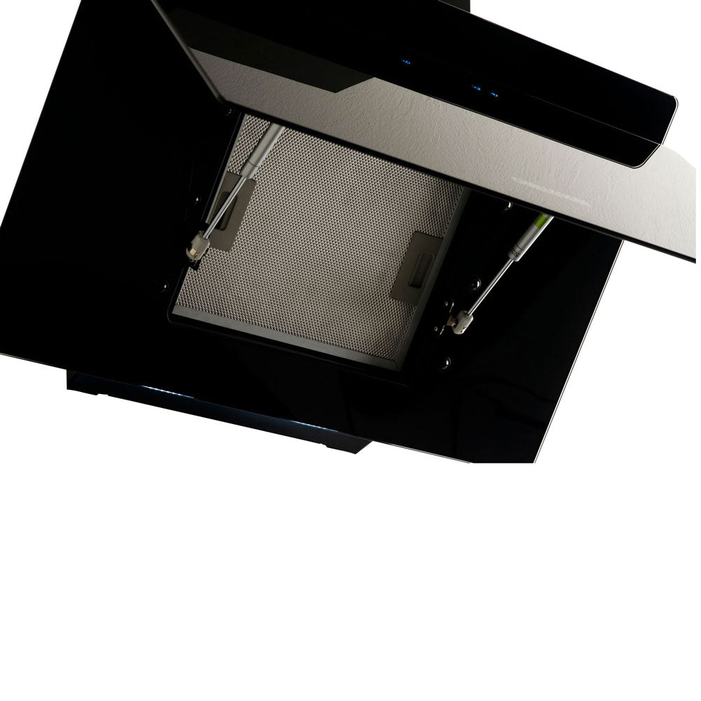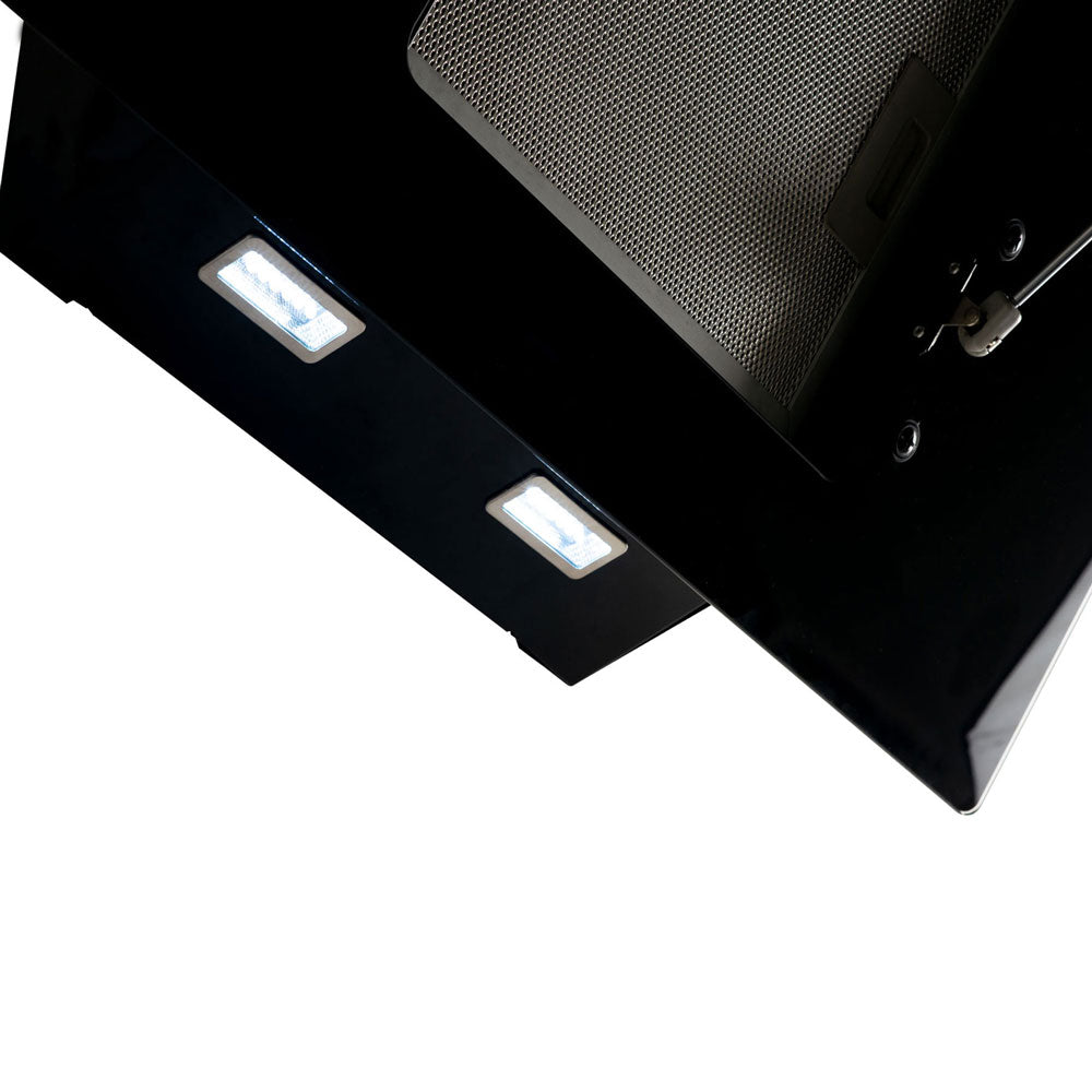 • Campana con frente y cuerpo en vidrio templado color negro de fácil limpieza.