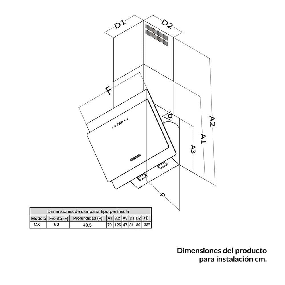 La Campana Challenger CX 4964 no solo es funcional, sino que también incluye iluminación, lo que mejora la visibilidad en su área de cocción. Su diseño de línea península y su altura ajustable del cubretubo, que varía entre 34 cm y 73 cm, la hacen versátil para diferentes configuraciones de cocina. Con un peso de solo 20 kg, su instalación es sencilla y práctica.
