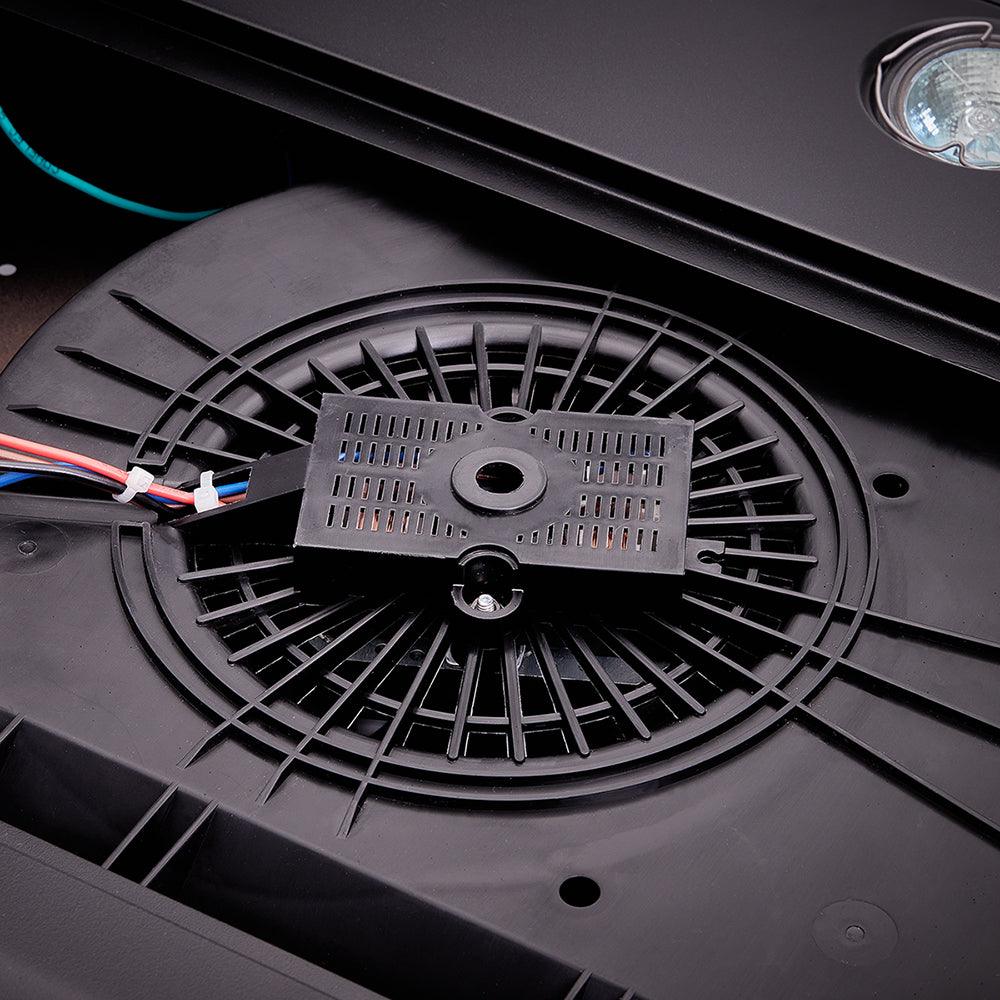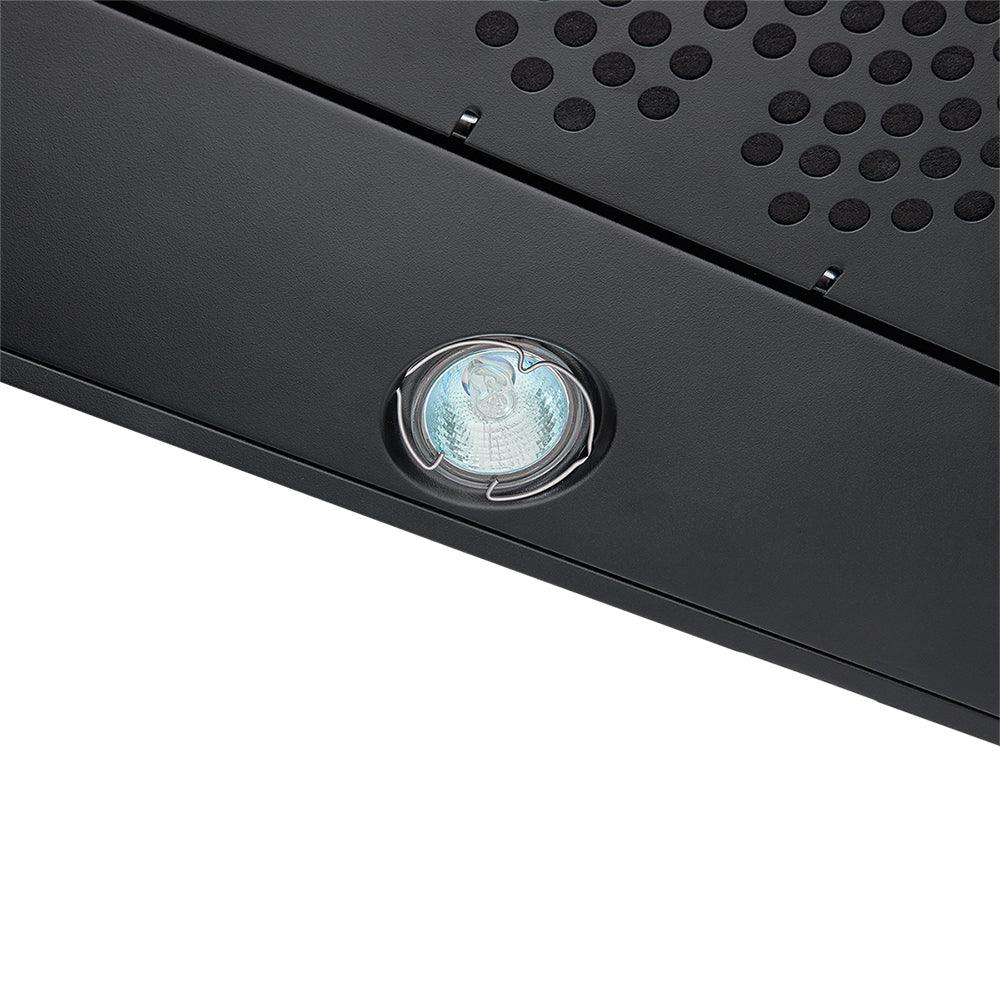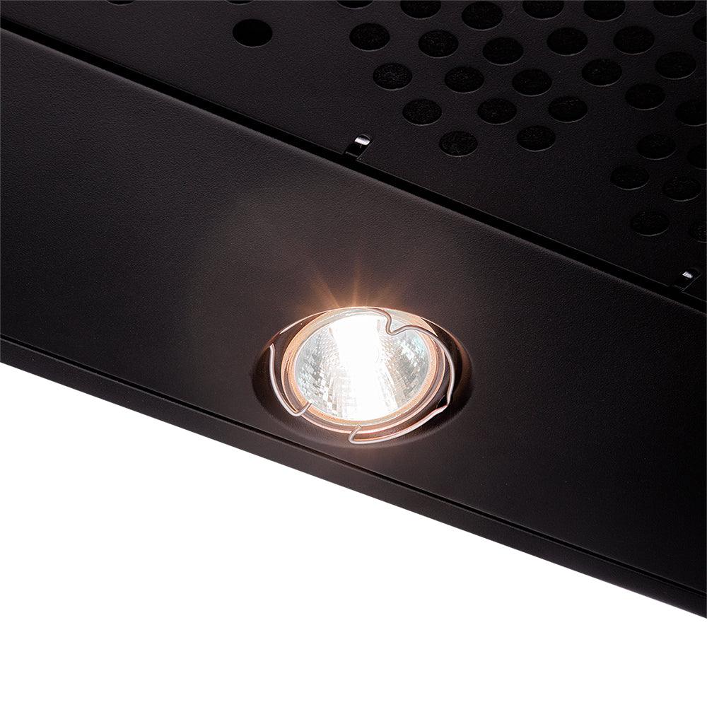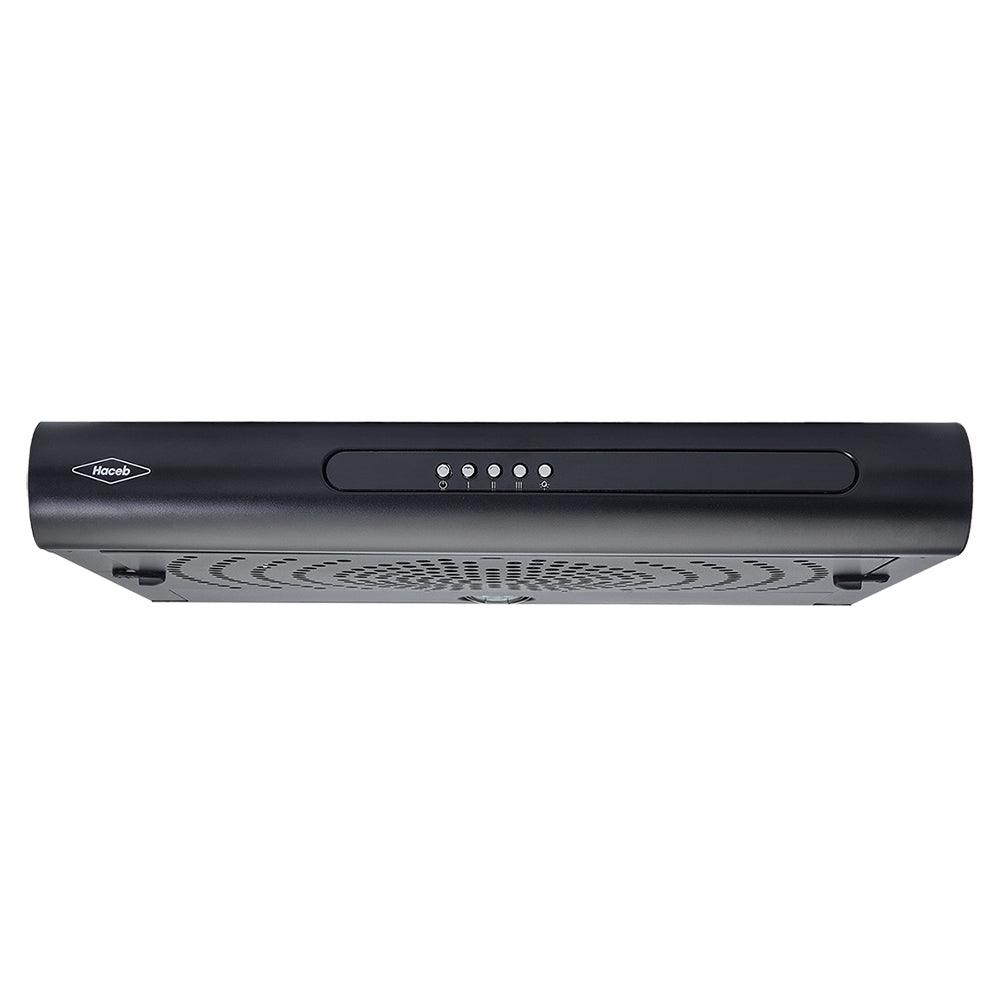 Campana Horizontal Negra de 60cm de ancho y con 3 niveles de operación. Diseño más delgado y liviano al tacto. Cuenta con filtros de carbón activado y atrapa grasas que te ayuda a disminuir la cantidad de grasa que se adhiere a la superficie de tu cocina y a minimizar los olores producidos durante los procesos de cocción. Su iluminación halógena es de alto alcance. Producto Ecodiseñado que reduce el impacto ambiental en un 34%.