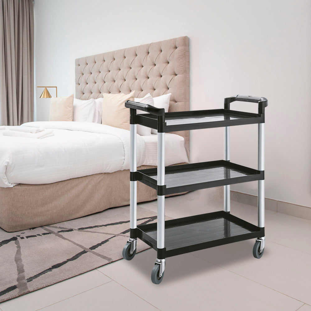Fácil Maniobrabilidad: Equipado con ruedas giratorias, el Carro Camarero Pequeño Rimax permite moverse con facilidad a través de espacios estrechos, asegurando un servicio rápido y eficiente.