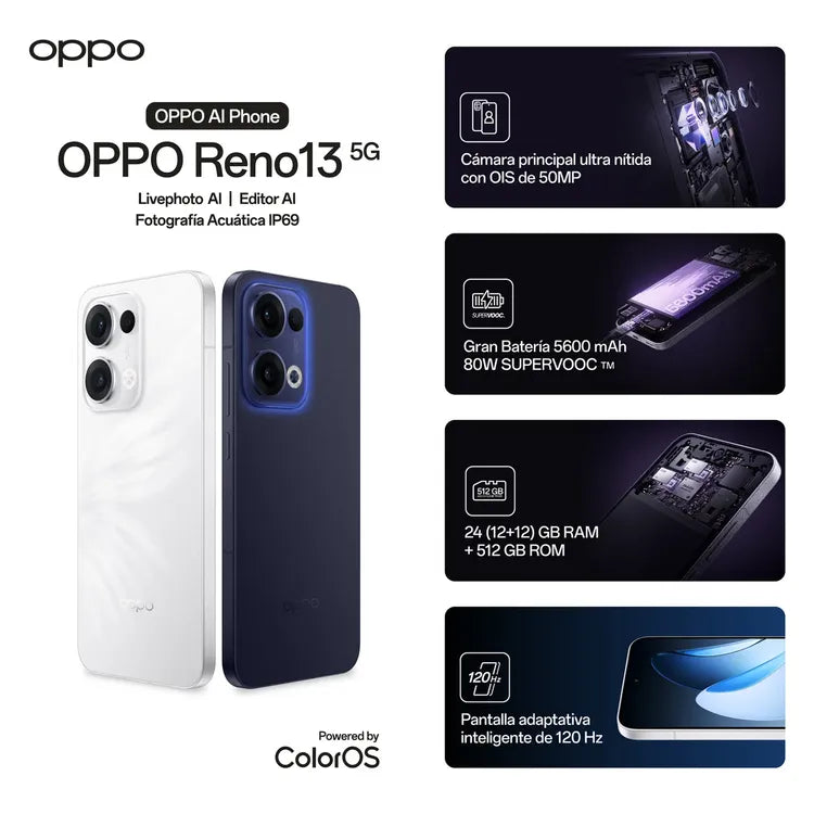 Celular Oppo Reno 13 512GB 5G Y Reloj, Blanco