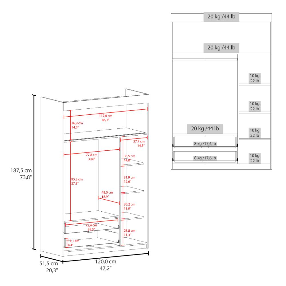 Closet Alma, Blanco, con Dos Cajones y Dos Puertas Corredizas