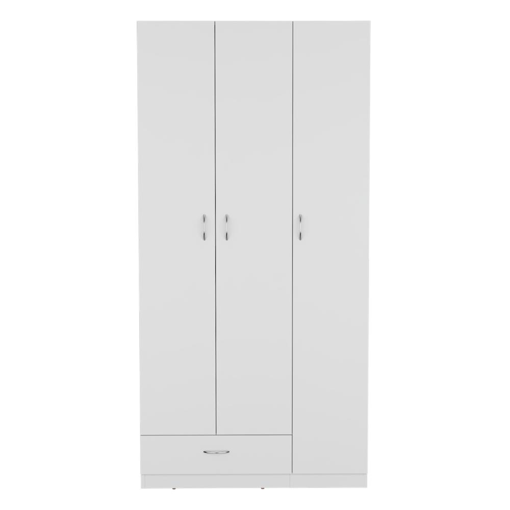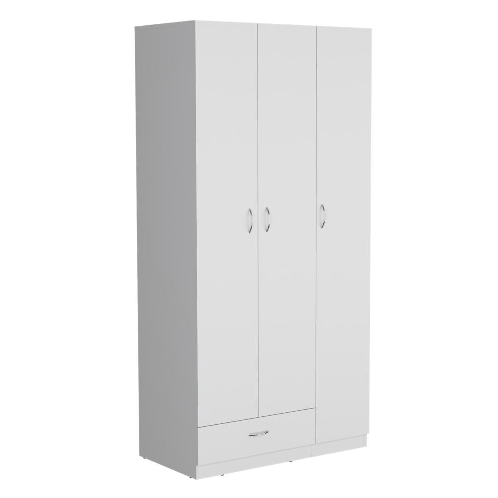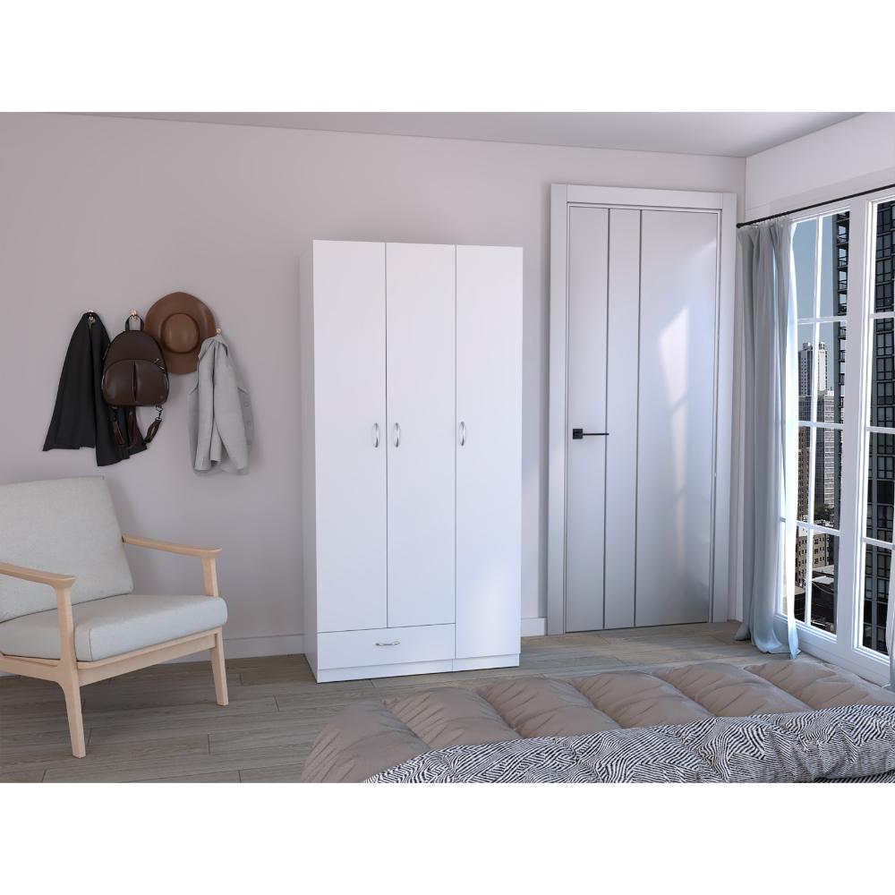 Closet, con 3 puertas, 1 cajón, un tubo para colgar ropa, amplios espacios para guardar ropa y otros elementos.