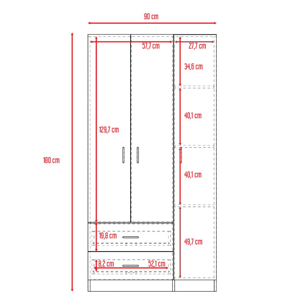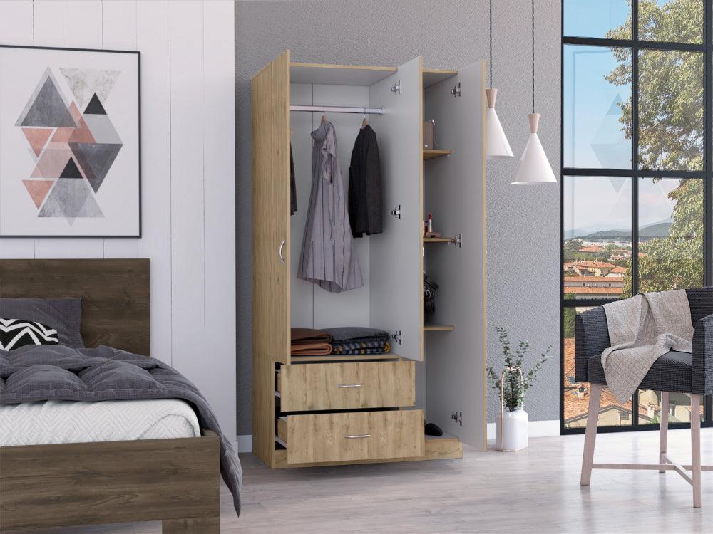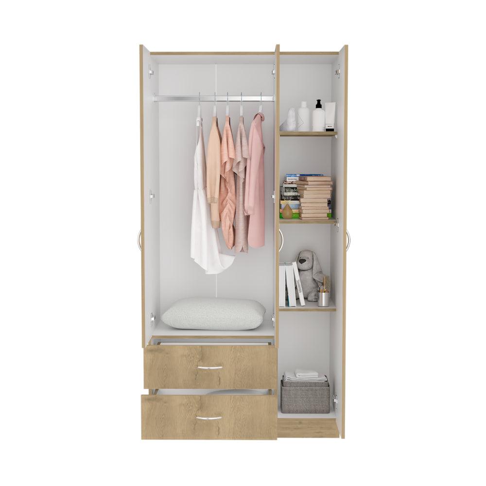 Closet América, Macadamia y Blanco, con Dos Cajones y Variedad de Entrepaños ZF