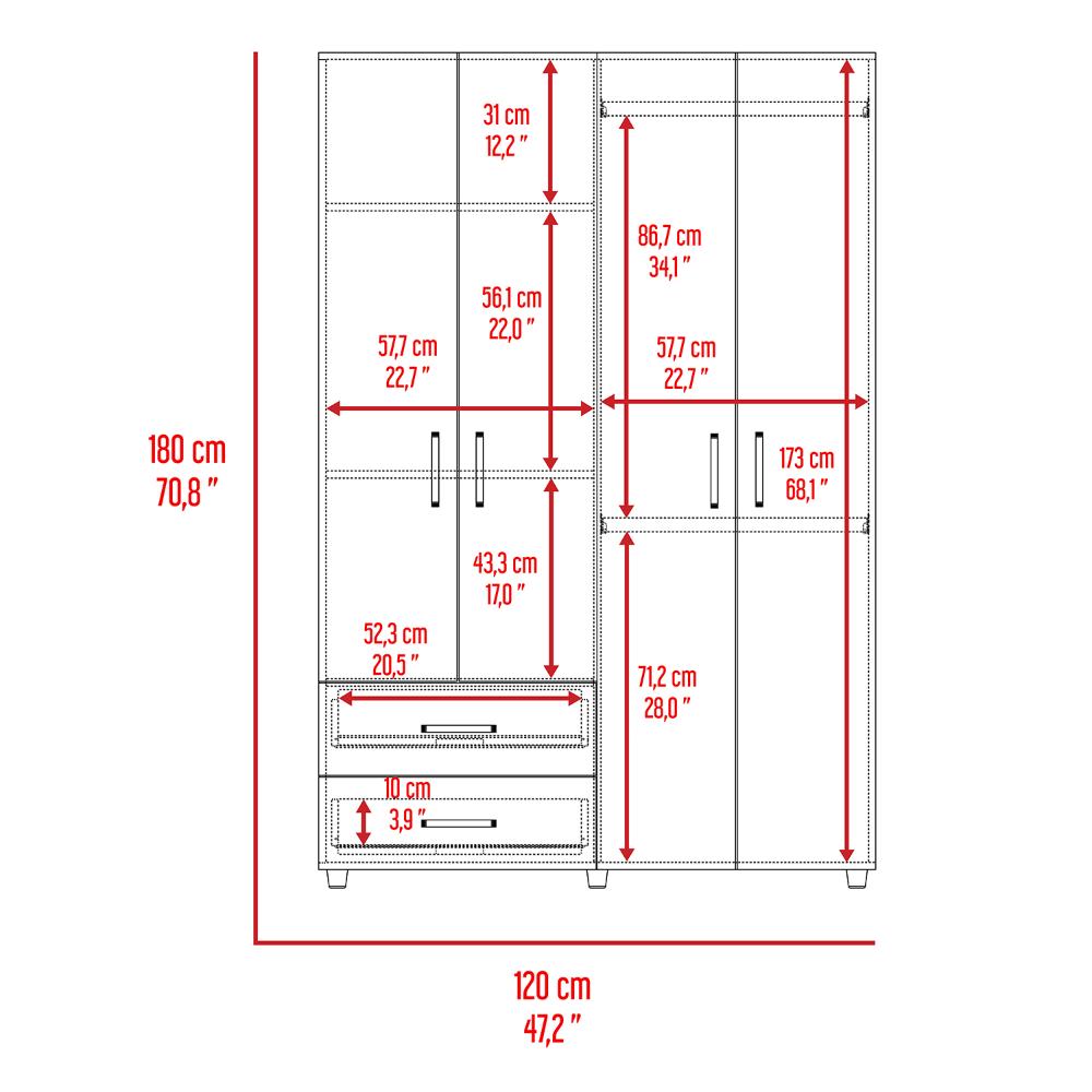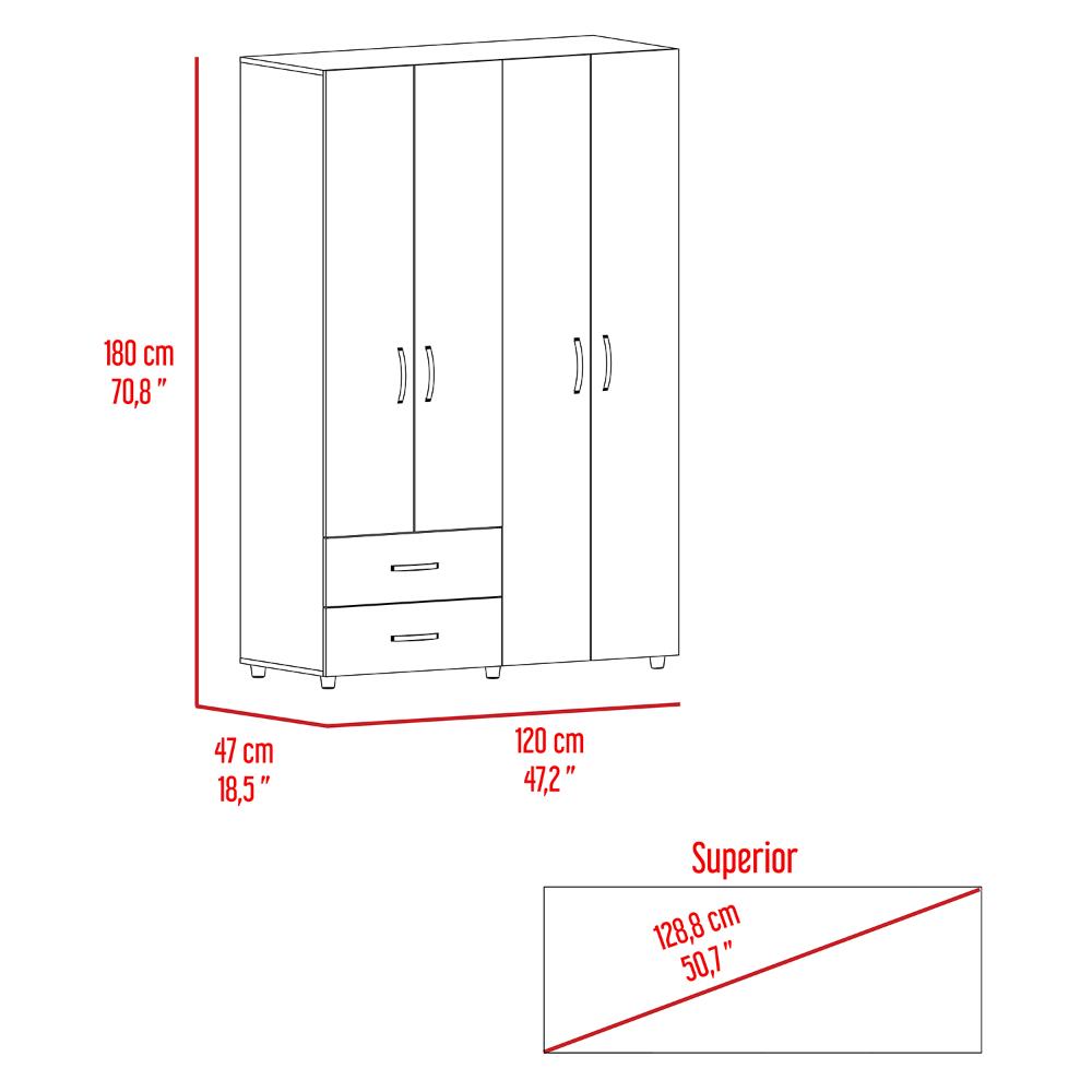 Closet Arkola, Humo y Blanco Duqueza, con Dos Cajones Organizadores y Cuatro Puertas Abatibles
