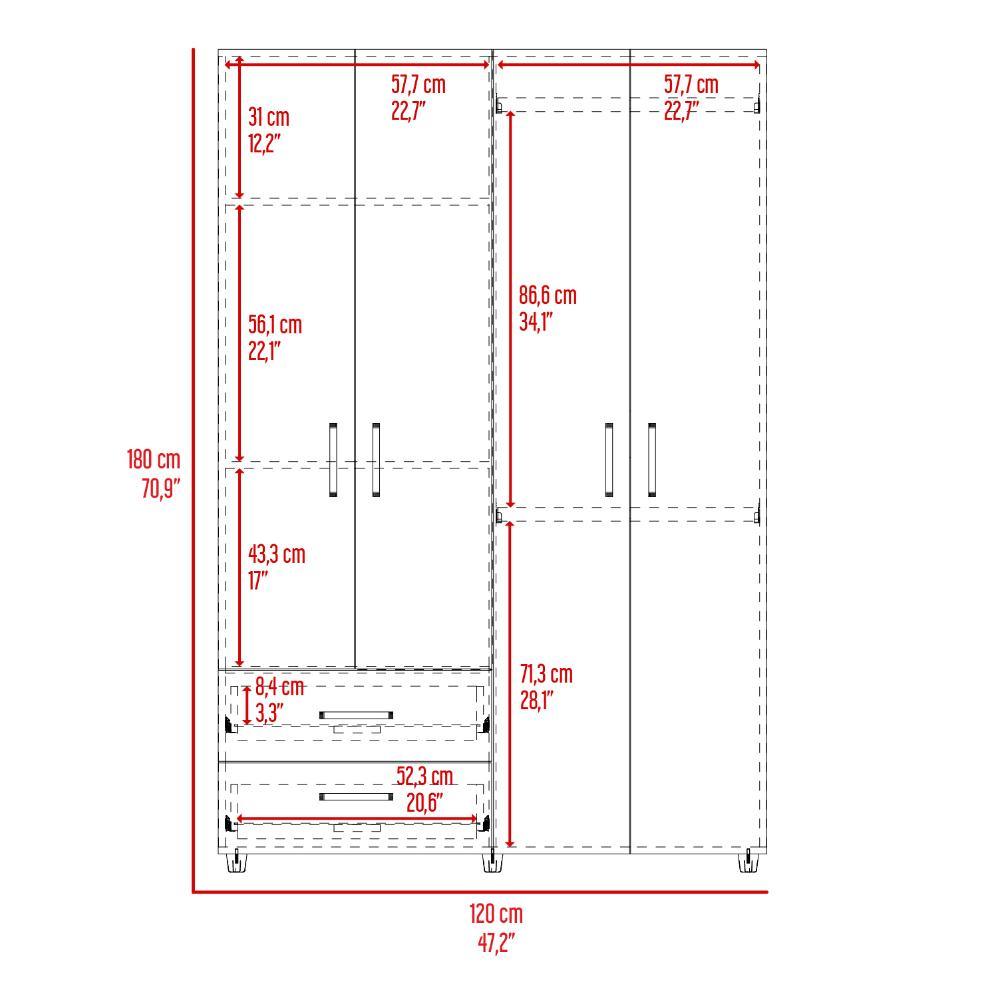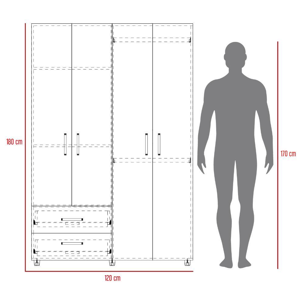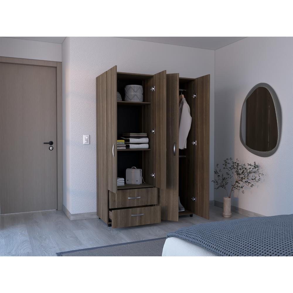 Closet Arkola, Milan y Wengue, con Dos Cajones Organizadores y Cuatro Puertas Abatibles