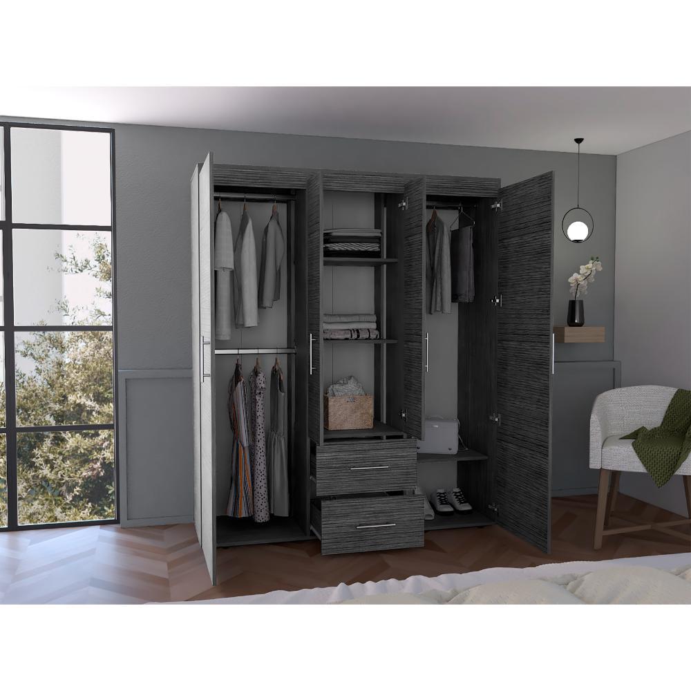Closet Bariloche Bombay Eco, Gris, con Variedad de Entrepaños y Cuatro Puertas Abatibles*