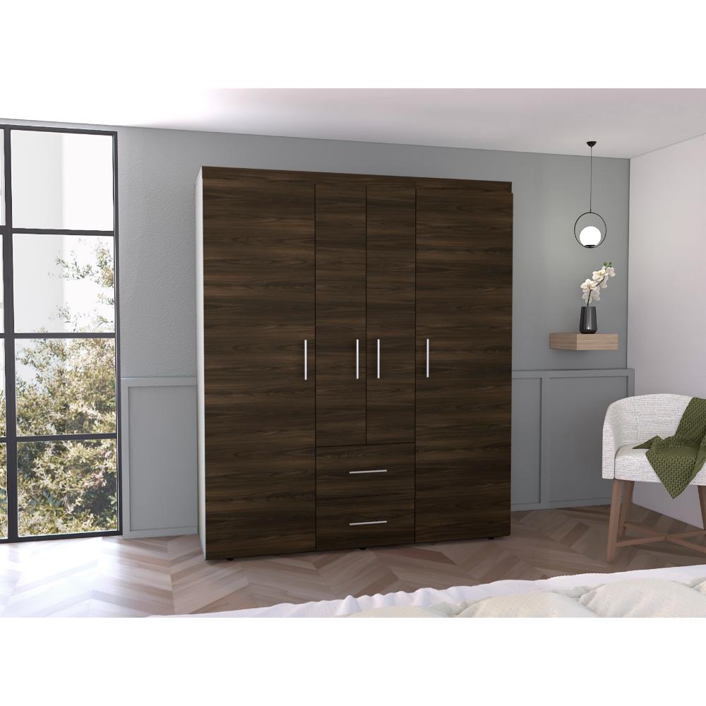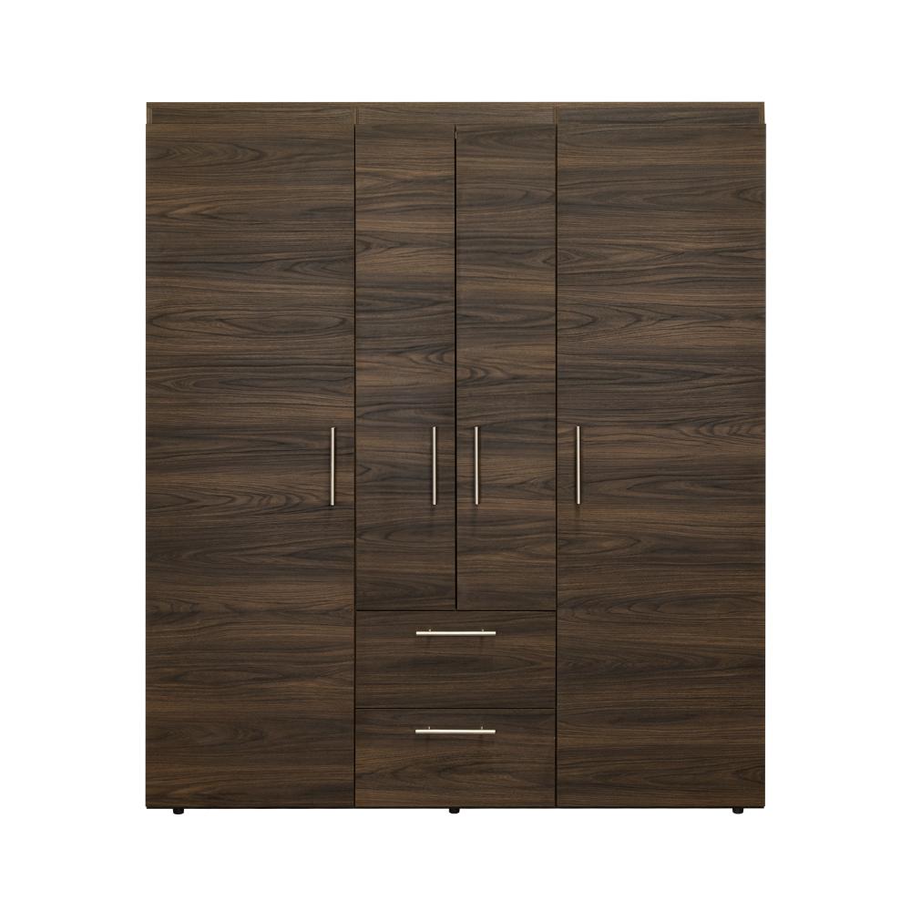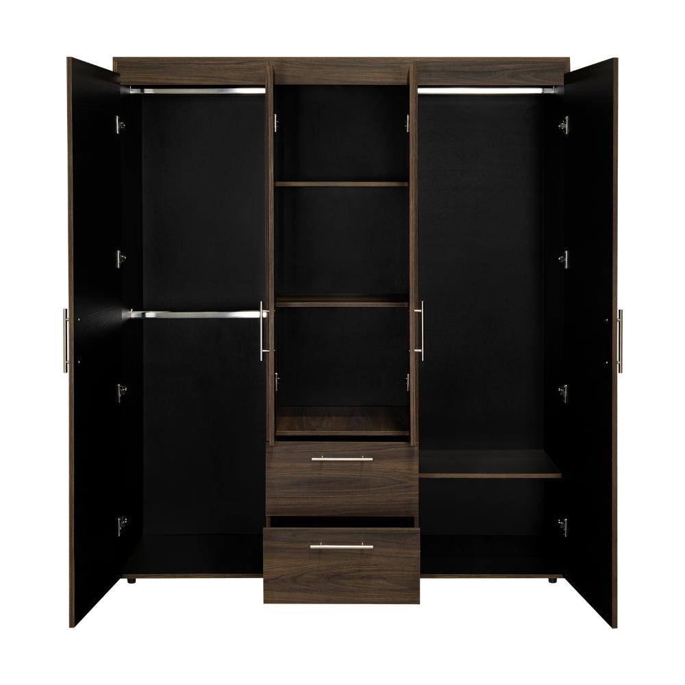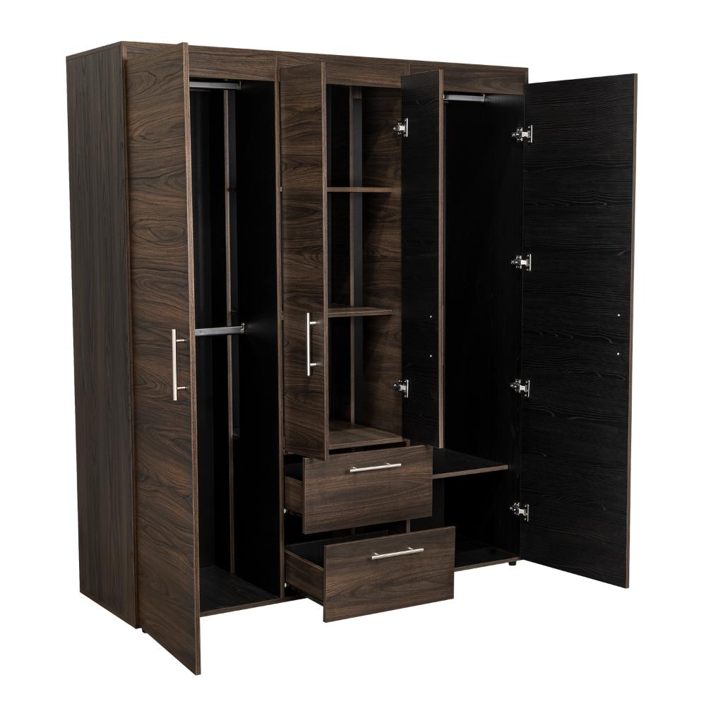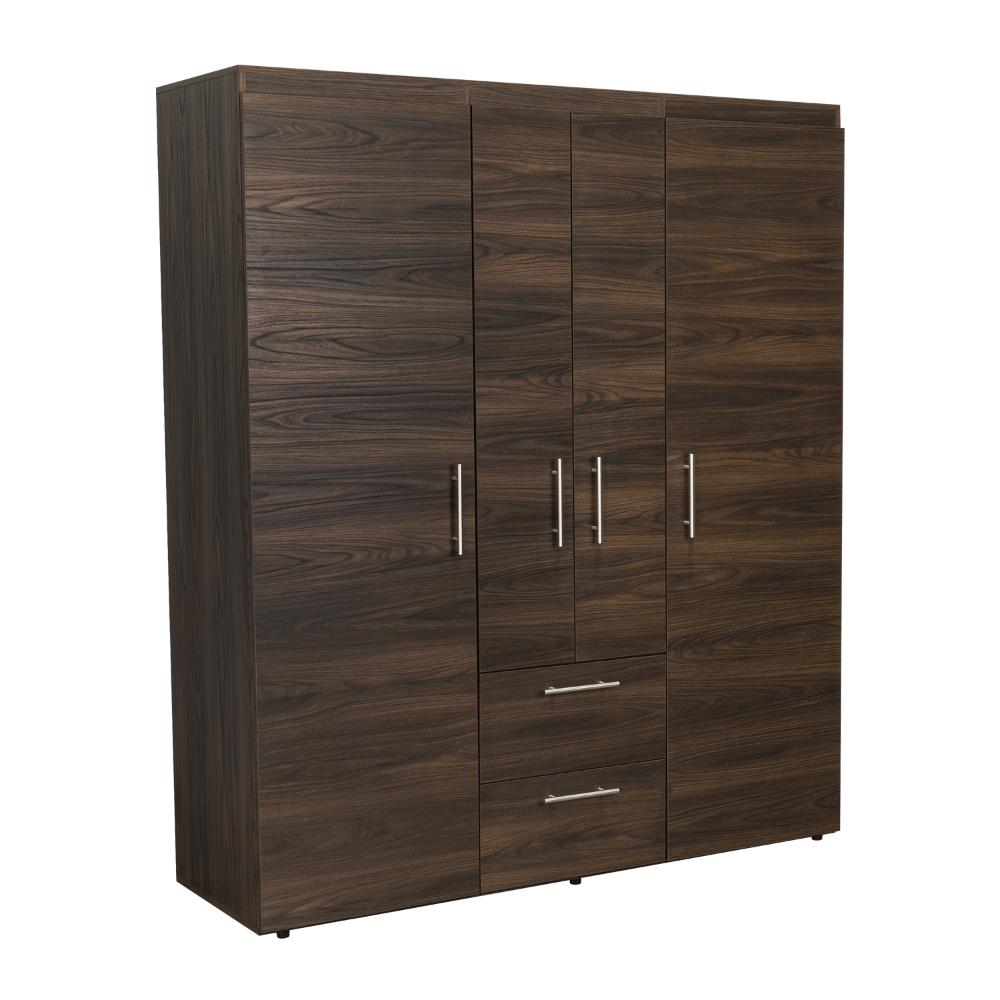 Closet Bariloche Bombay Eco, Nogal Europeo y Wengue , con Variedad de Entrepaños y Cuatro Puertas Abatibles