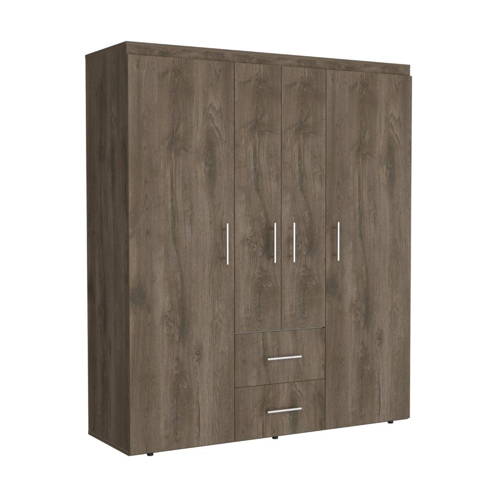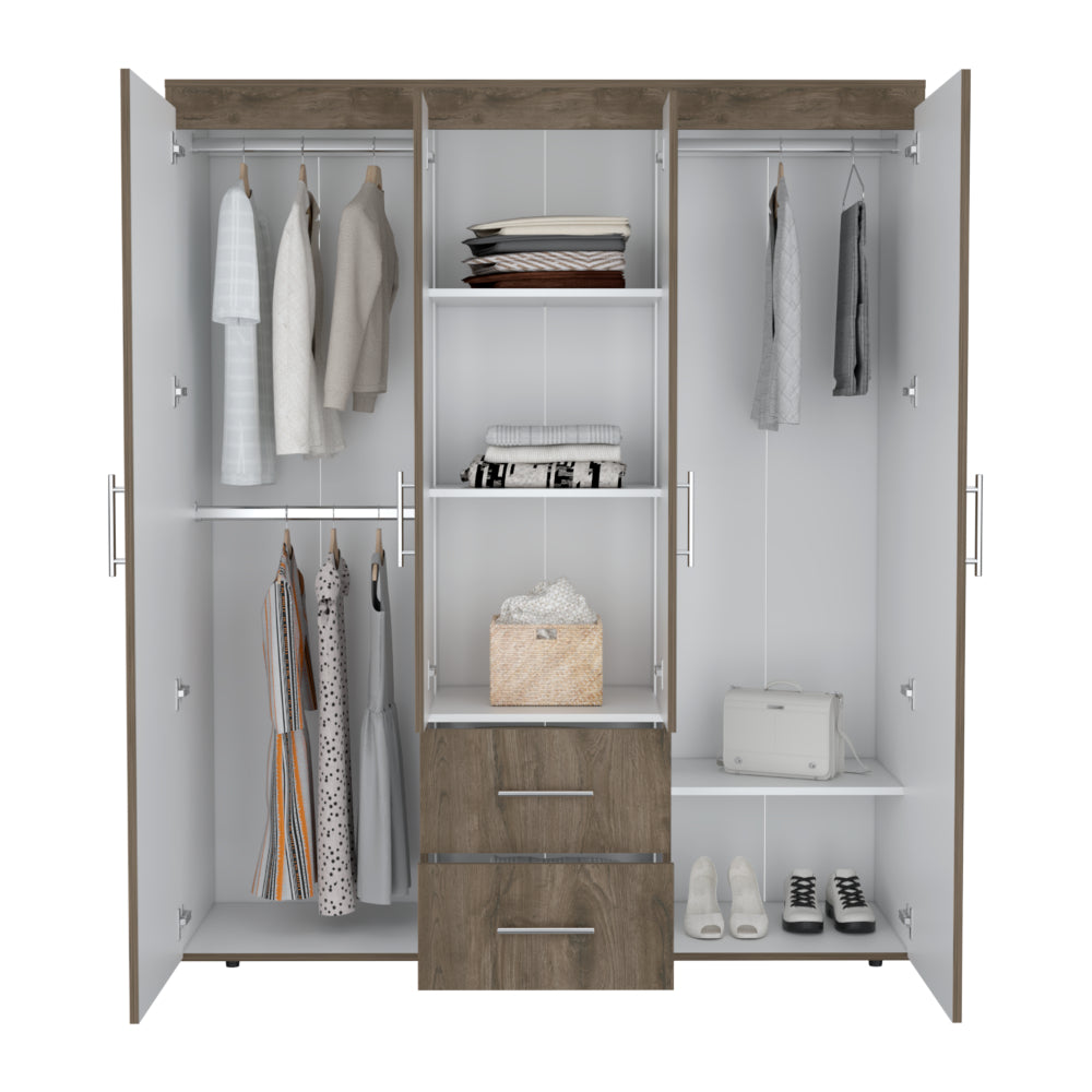 Closet Bariloche Bombay Eco, Nogal y Blanco, con Variedad de Entrepaños y Cuatro Puertas Abatibles