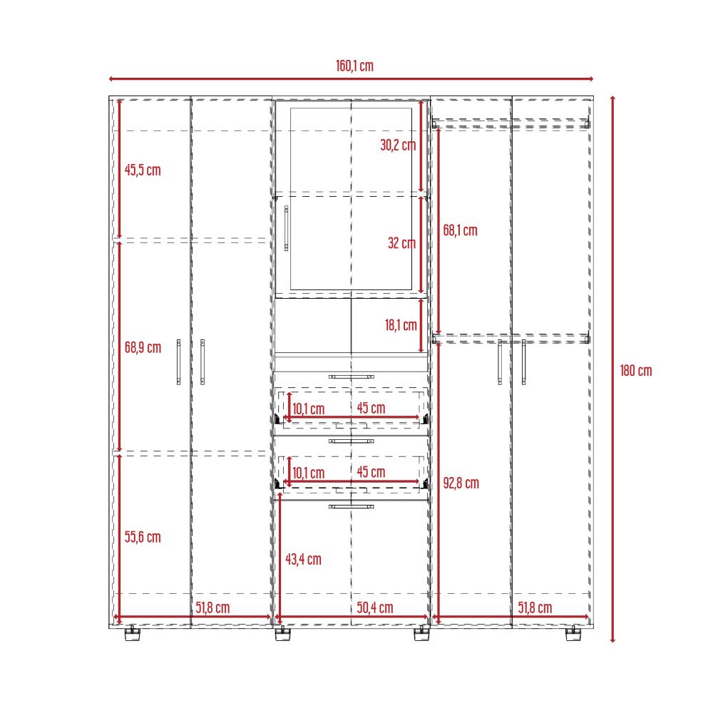 Closet Camelia, Blanco, con Dos Cajones, Seis Puertas y Tubos Metalicos