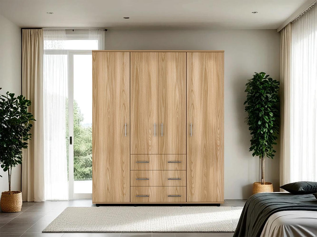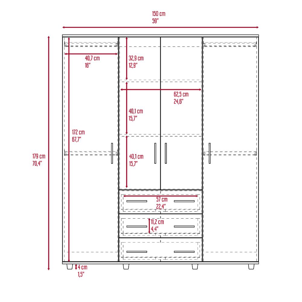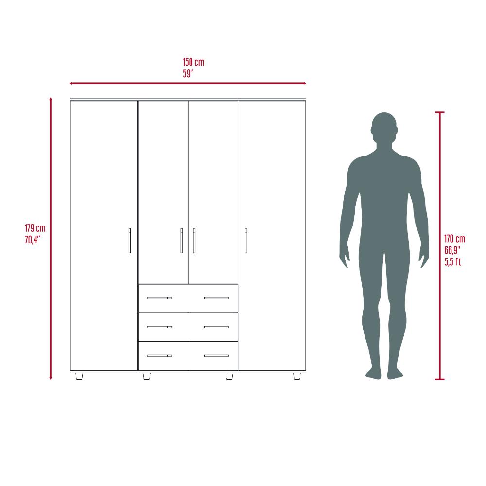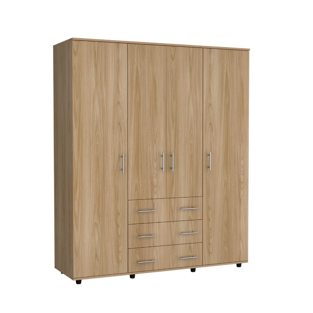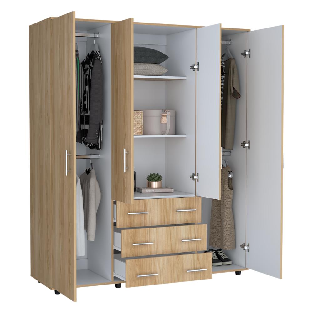 Closet Fontana, Fresno Europeo y Blanco, con Cuatro Tubos Para Colgar Ropa y Zapatero En La Parte Inferior