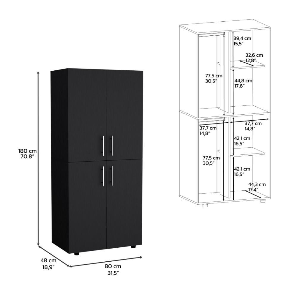 Closet, con 4 puertas abatibles, 2 tubos para colgar prendas, y 3 entrepaños para organizar.