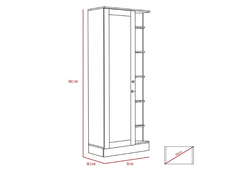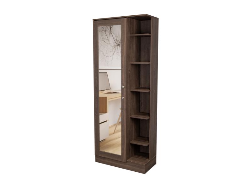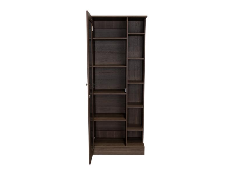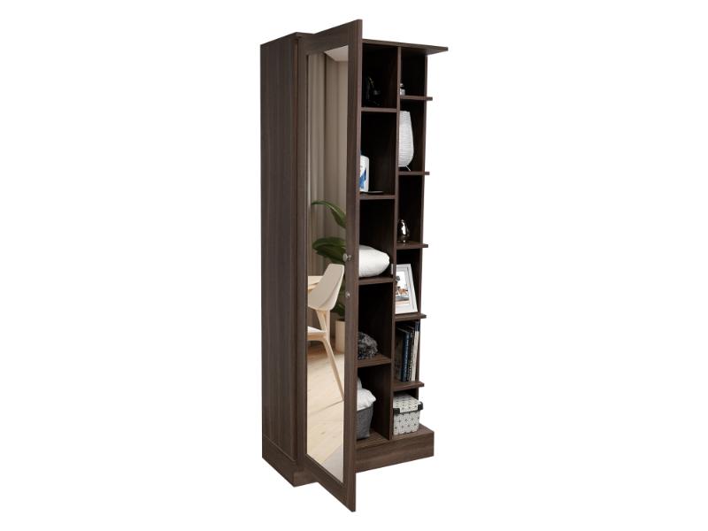Closet Lara con Espejo, Chocolate, con Siete Entrepaños y Gran Capacidad de Almacenamiento