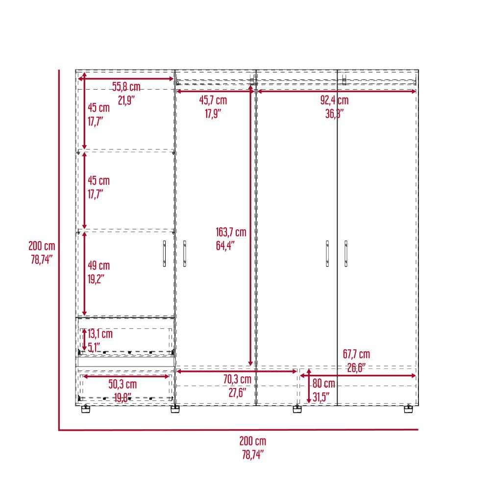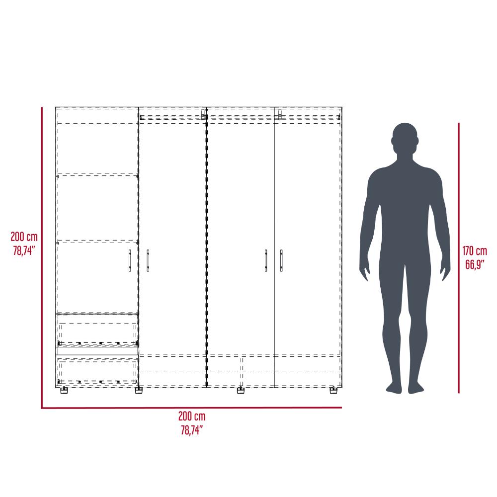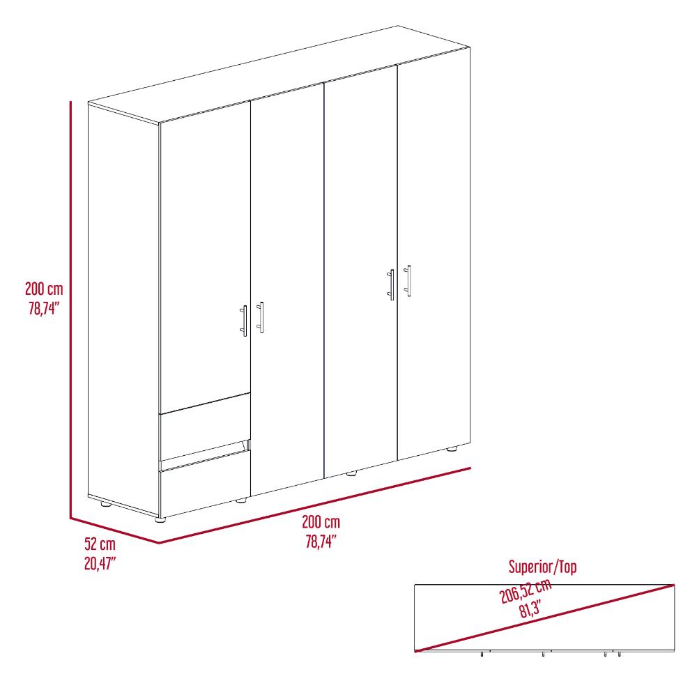 Closet Light 200, Nogal y Wengue, con amplios espacios de almacenamiento