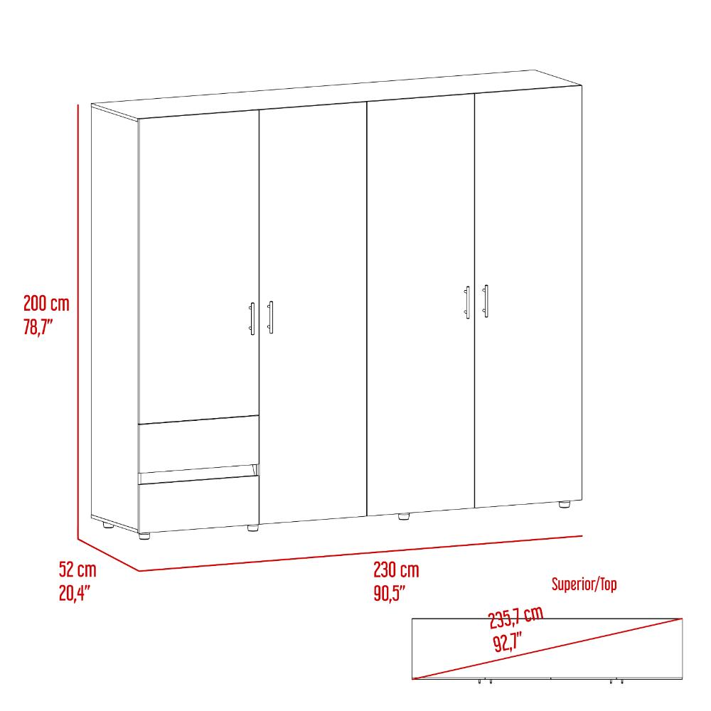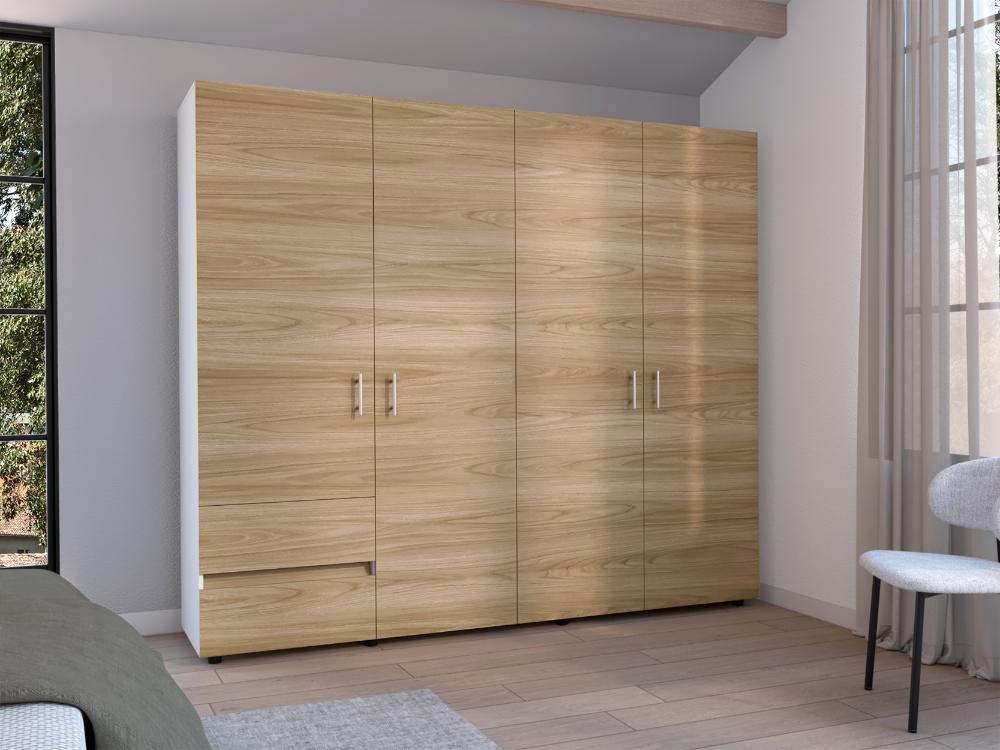 Closet Light 230, Blanco Duqueza y Fresno Europeo, con dos cajones y cuatro puertas