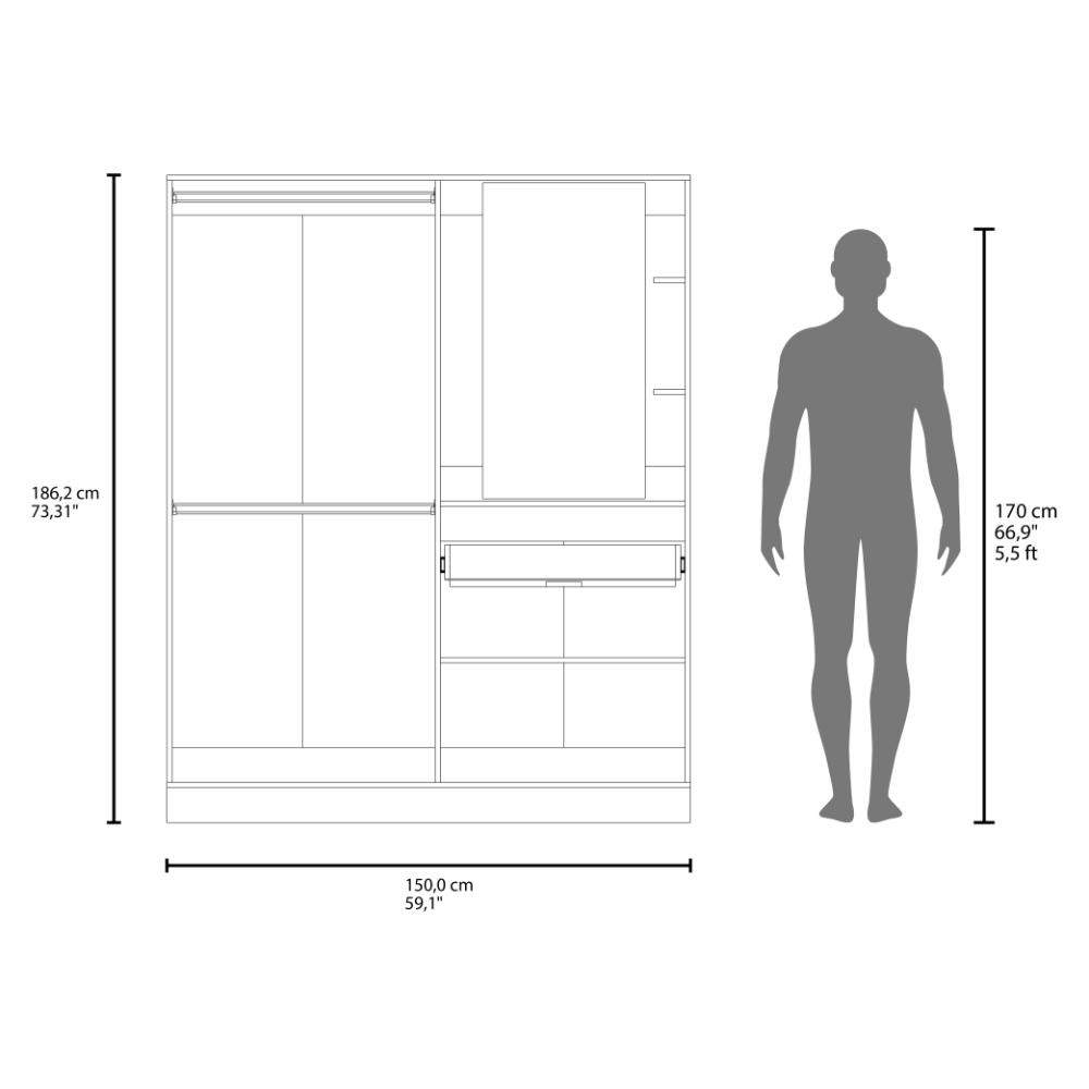 Closet Mouren 150, Blando Duqueza, Incluye espejo ZF