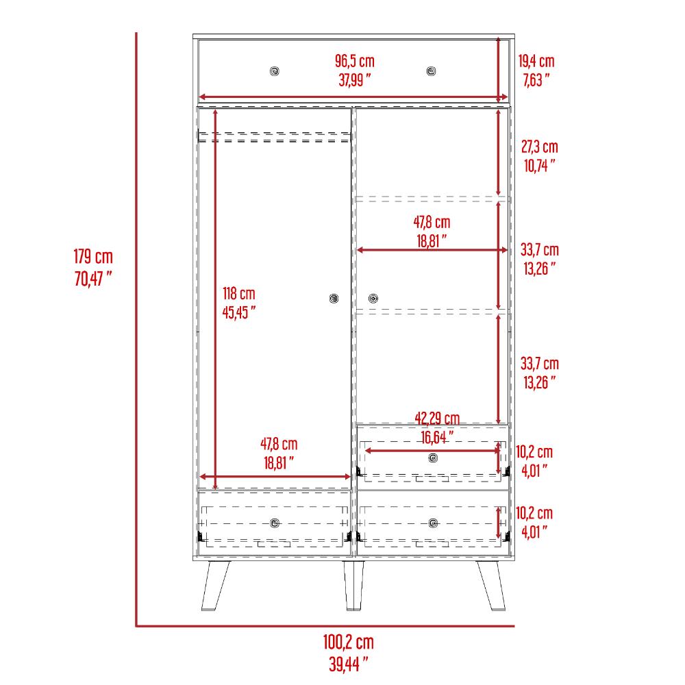 Closet Samay, Café Claro y Gris, con Tres Puertas Batientes y Tres Cajones