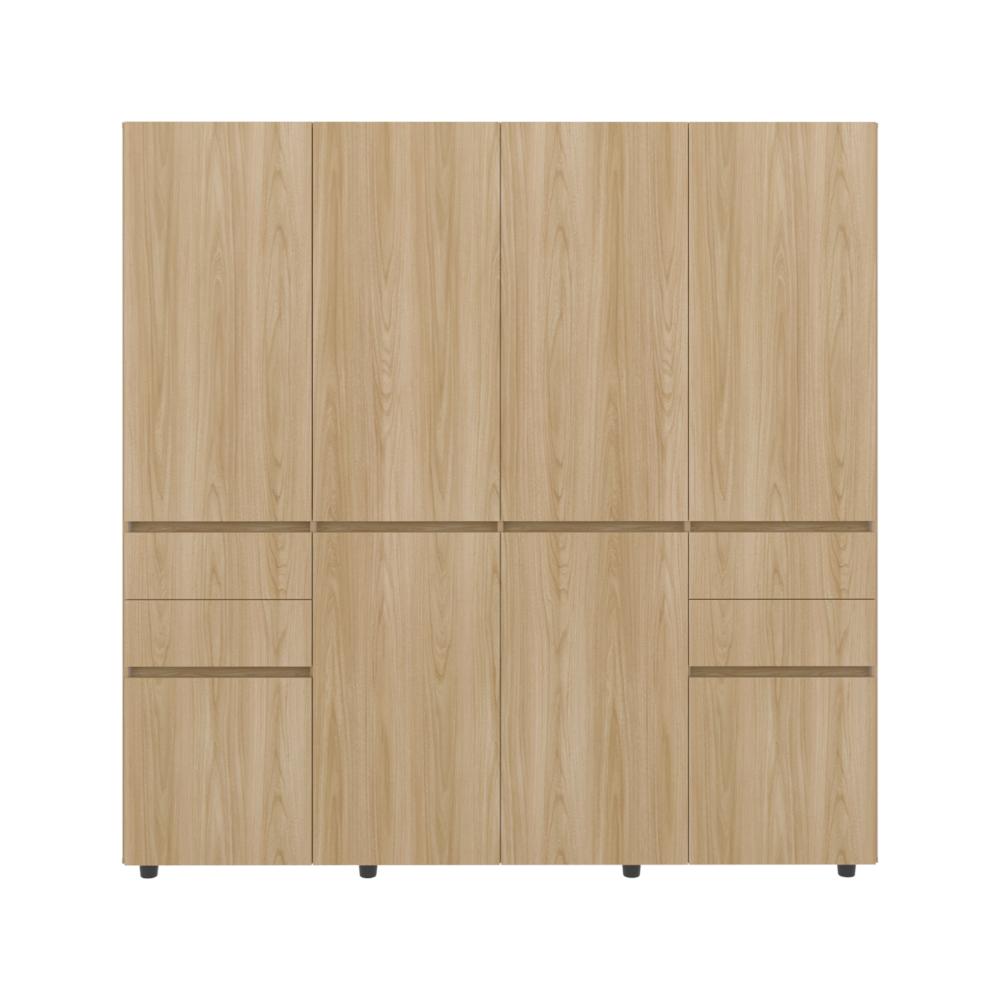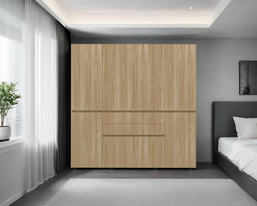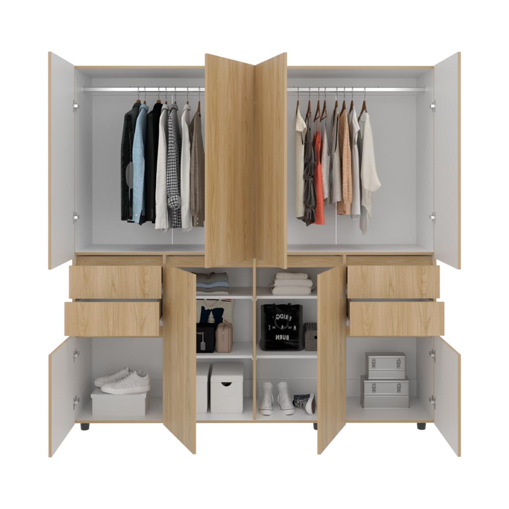 Closet Siruela 200, Fresno Europeo y Blanco, con Cuatro Cajones, Ocho Puertas y Gran Capacidad de Almacenamiento