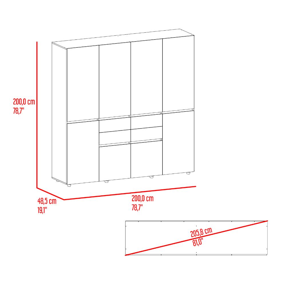Closet Siruela 200, Milan y Wengue, con Cuatro Cajones, Ocho Puertas y Gran Capacidad de Almacenamiento