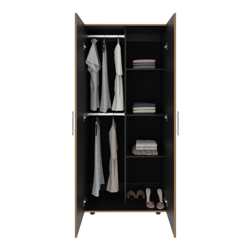 Closet, con 2 puertas abatibles, 2 tubos para colgar prendas, y entrepaños para organizar.