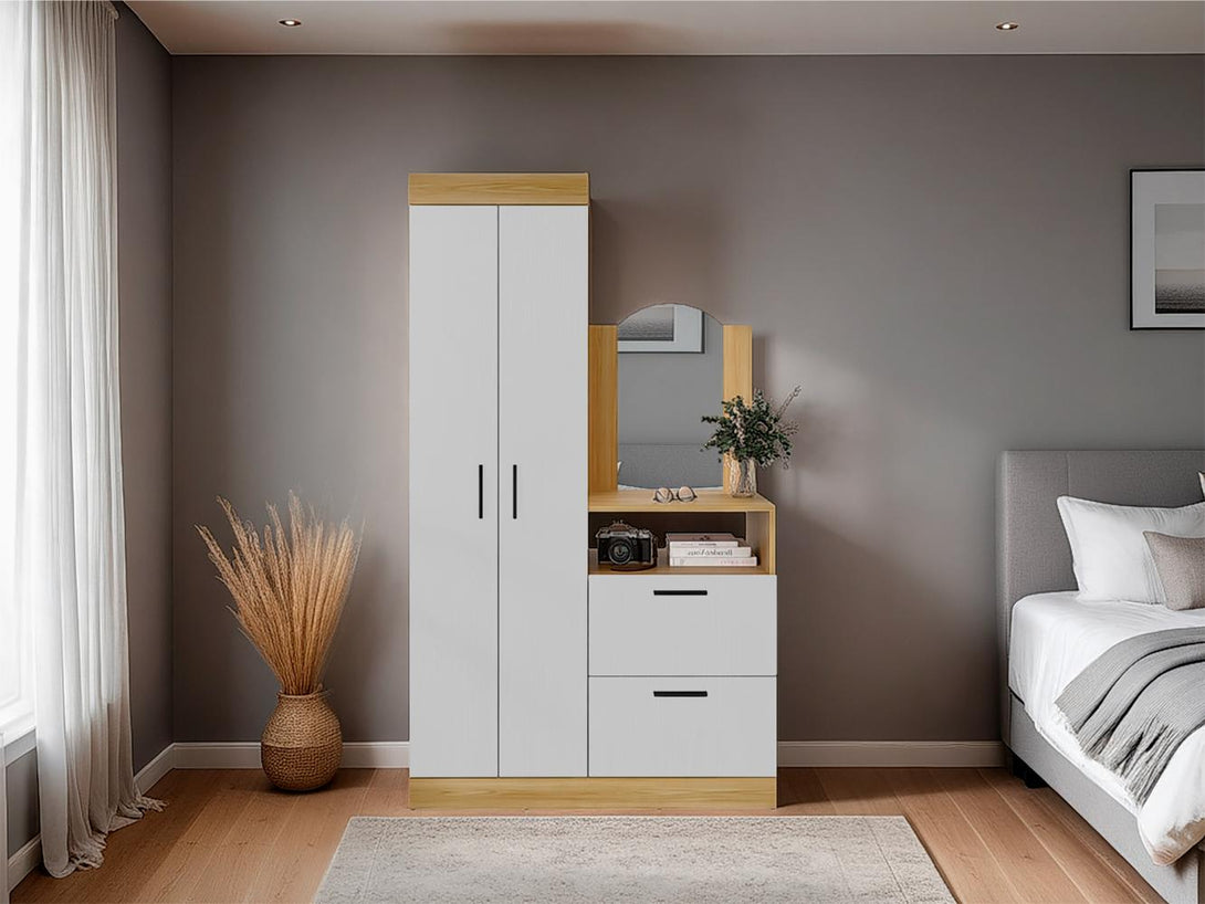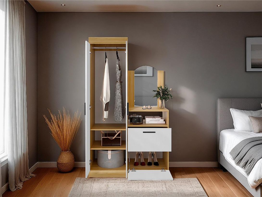 Closet Tocador Praga, Fresno y Blanco, con diseño moderno incluye Espejo
