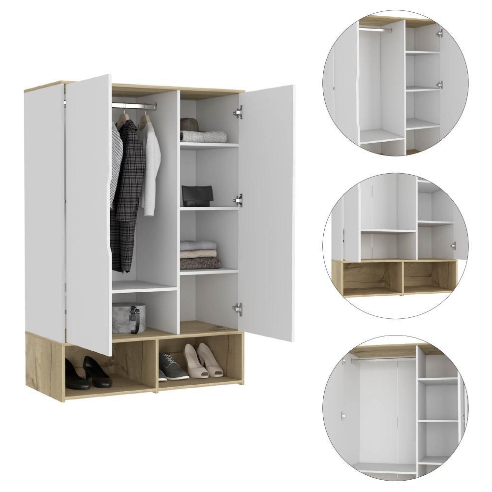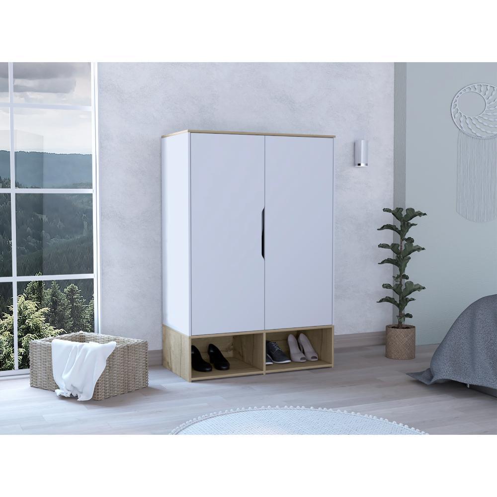 Closet Zapatero Vicktus, Blanco y Café claro, con dos puertas batientes, amplios espacios para almacenamiento
