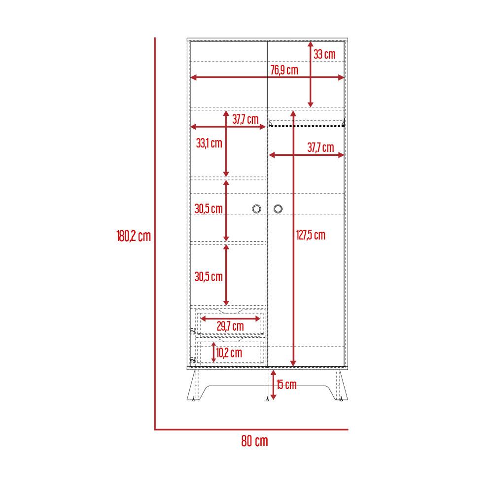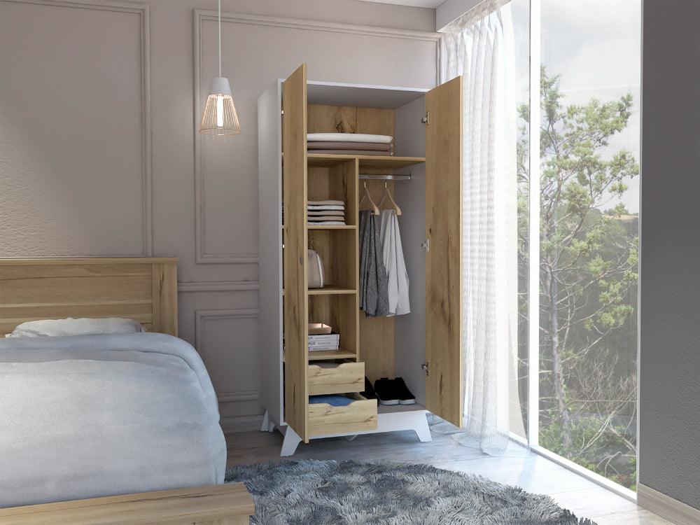 Closet, con dos cajones, dos puertas abatibles, diseño moderno y fácil armado.