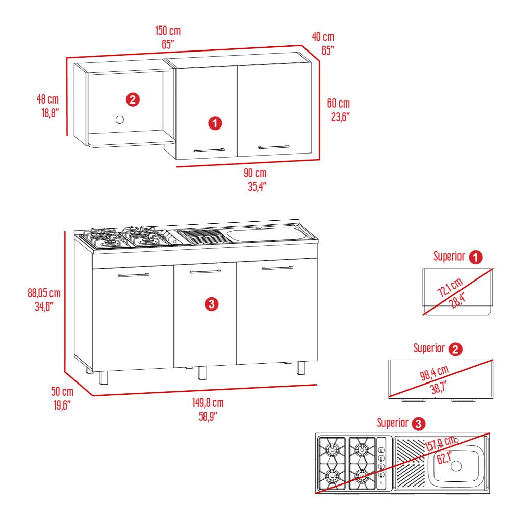 Cocina Integral 1,50, incluye mesón derecho.