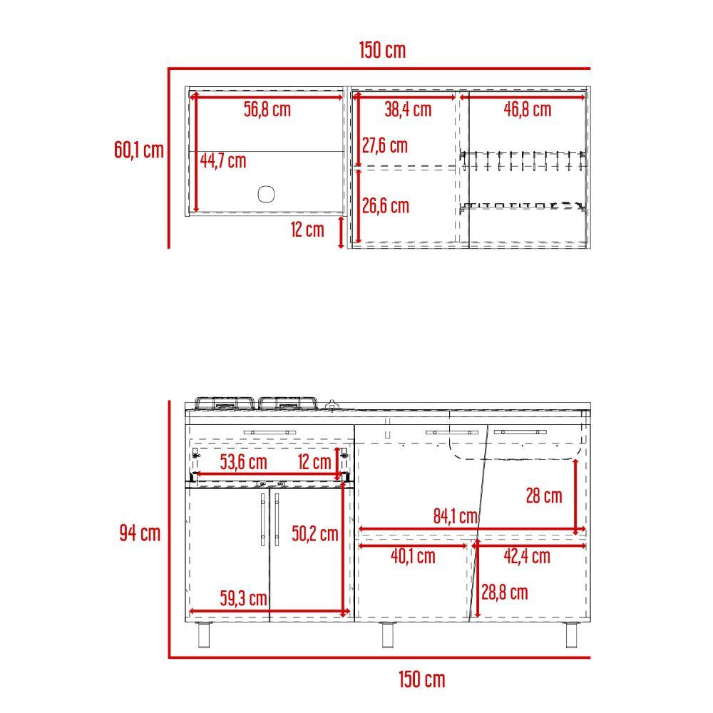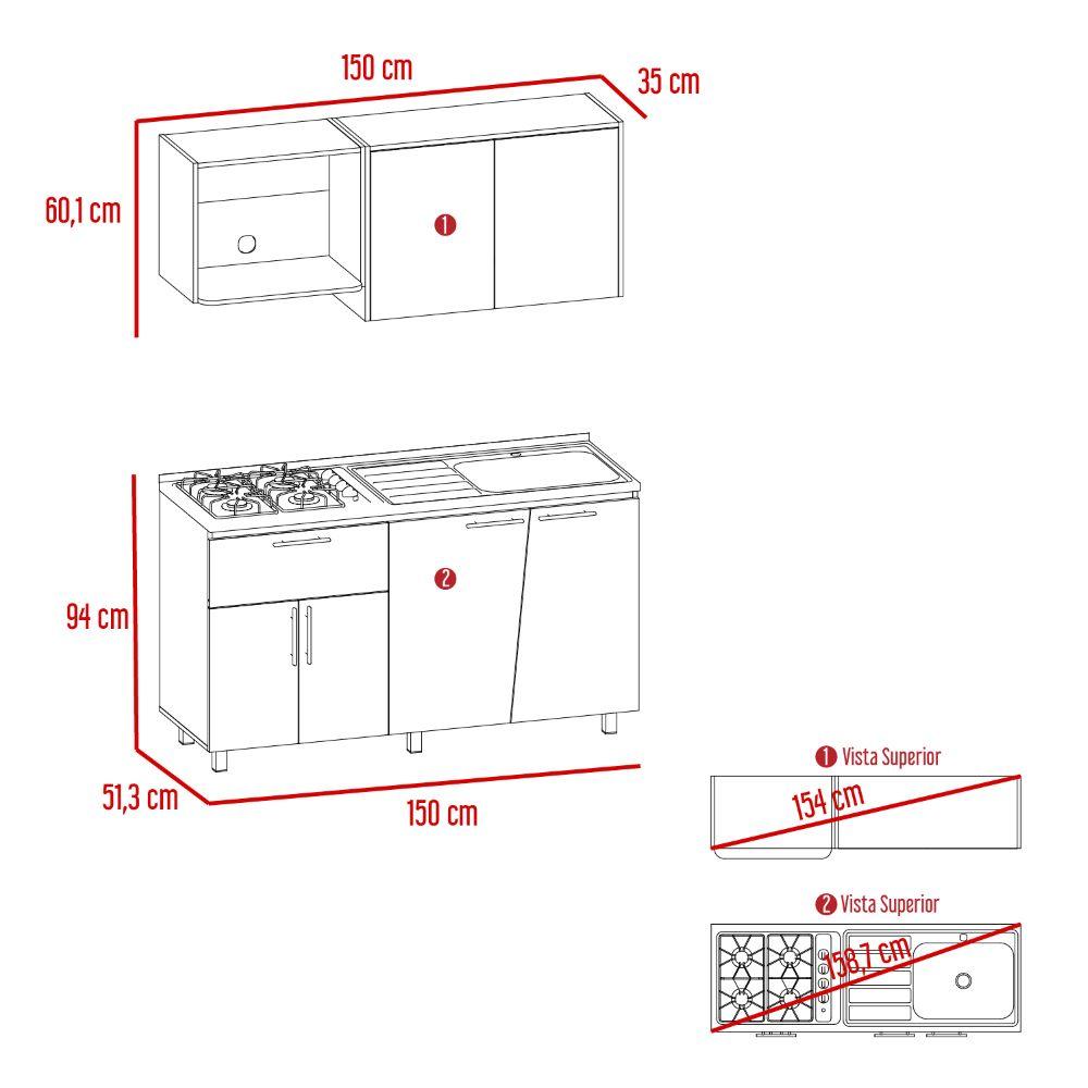 Cocina Integral, con 6 puertas abatibles, 4 entre paños, 2 cajones y pozuelo a la derecha *INCLUYE MESÓN*