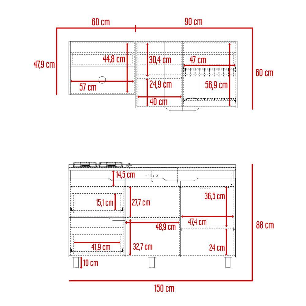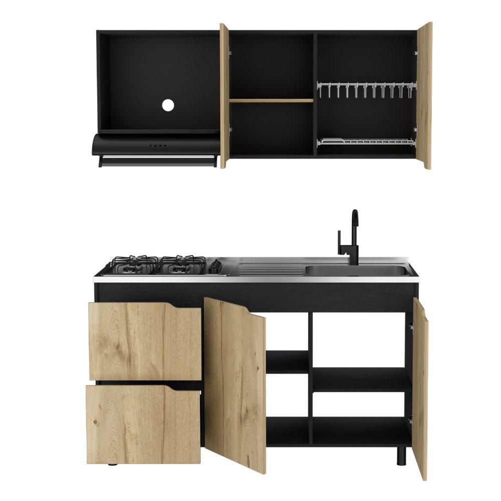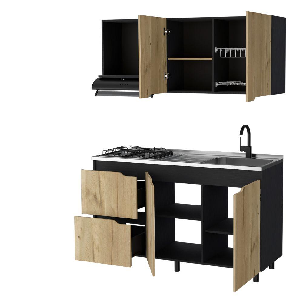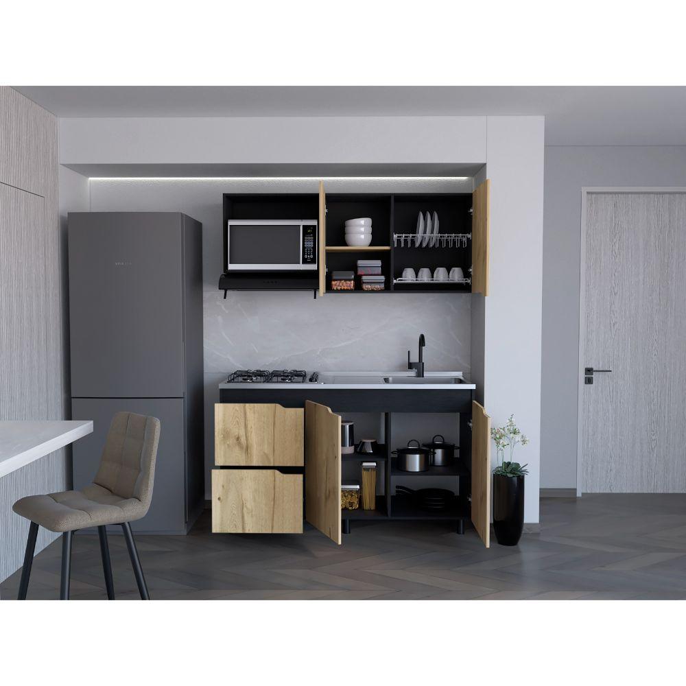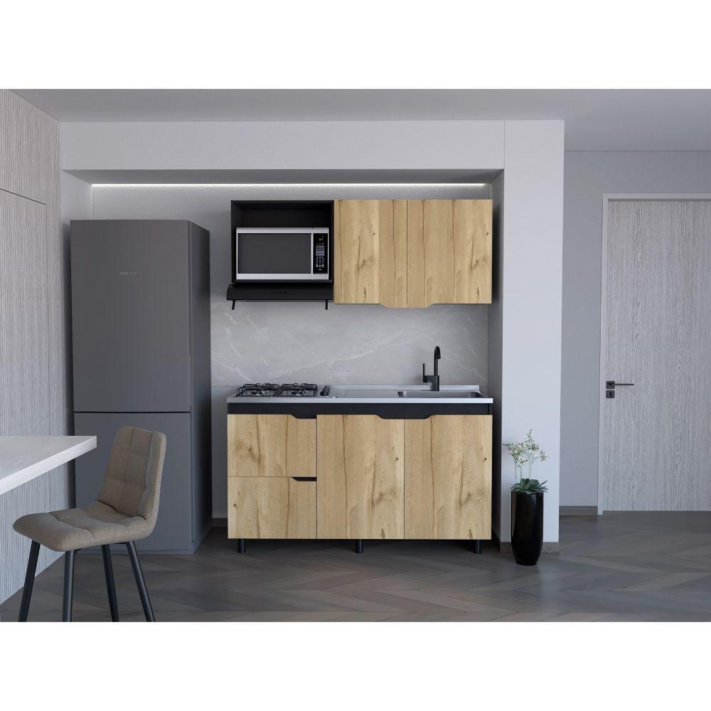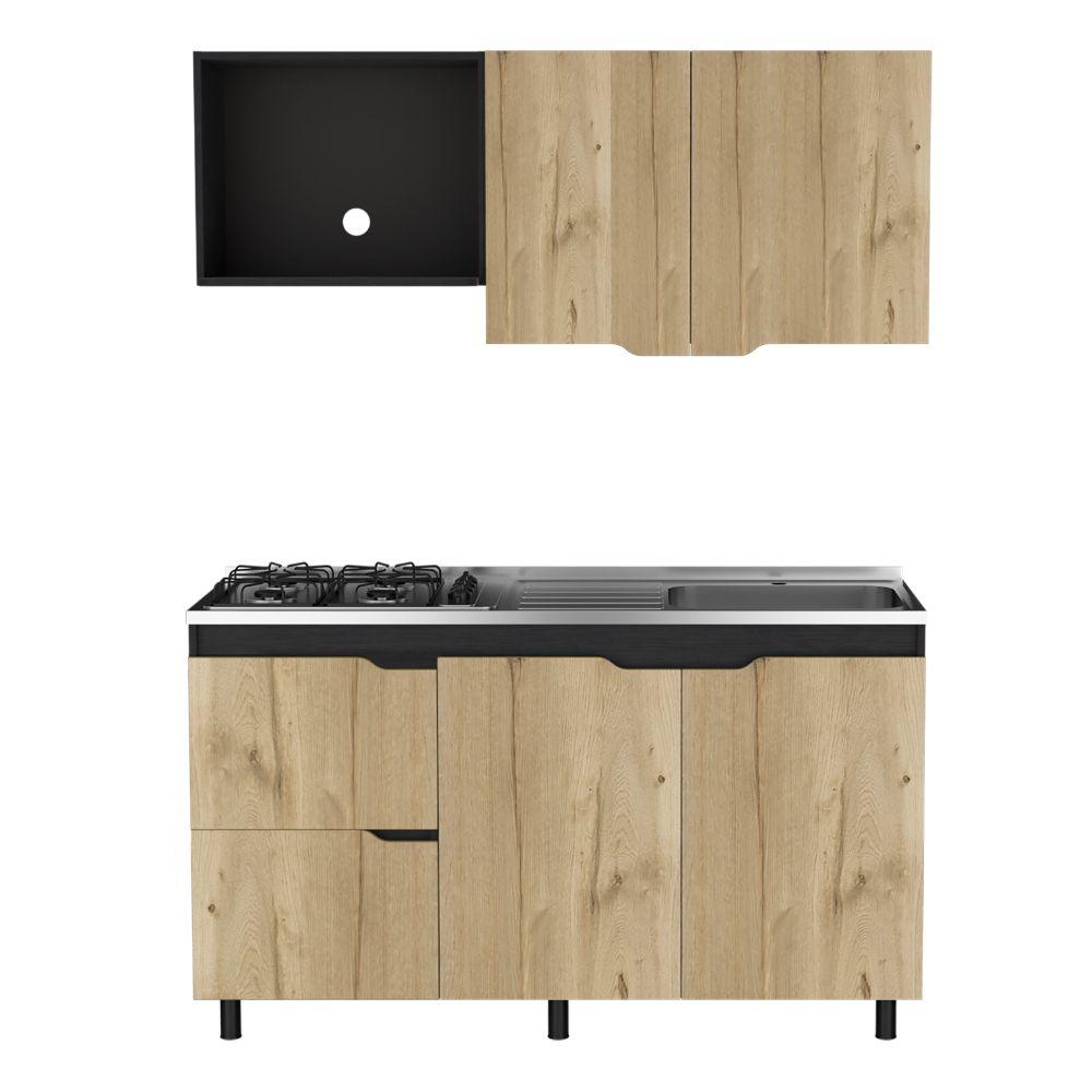 Cocina Integral Mound, Café Claro y Wengue, Incluye Mesón Derecho en Acero