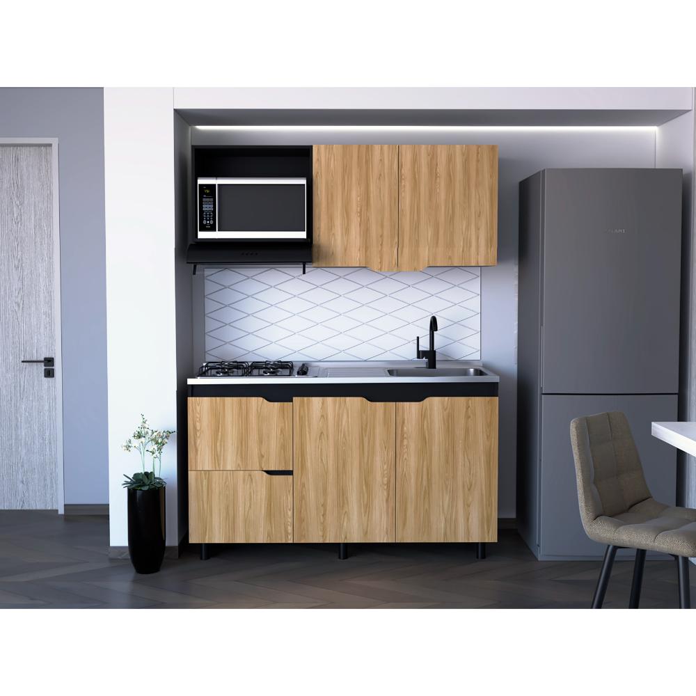 Cocina Integral Mound, Café Claro y Wengue, Incluye Mesón Derecho en Acero ZF