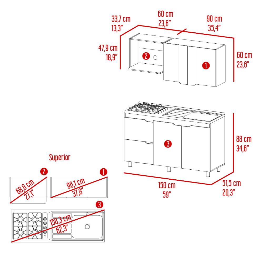 Cocina Integral, incluye Mesón derecho en Acero.