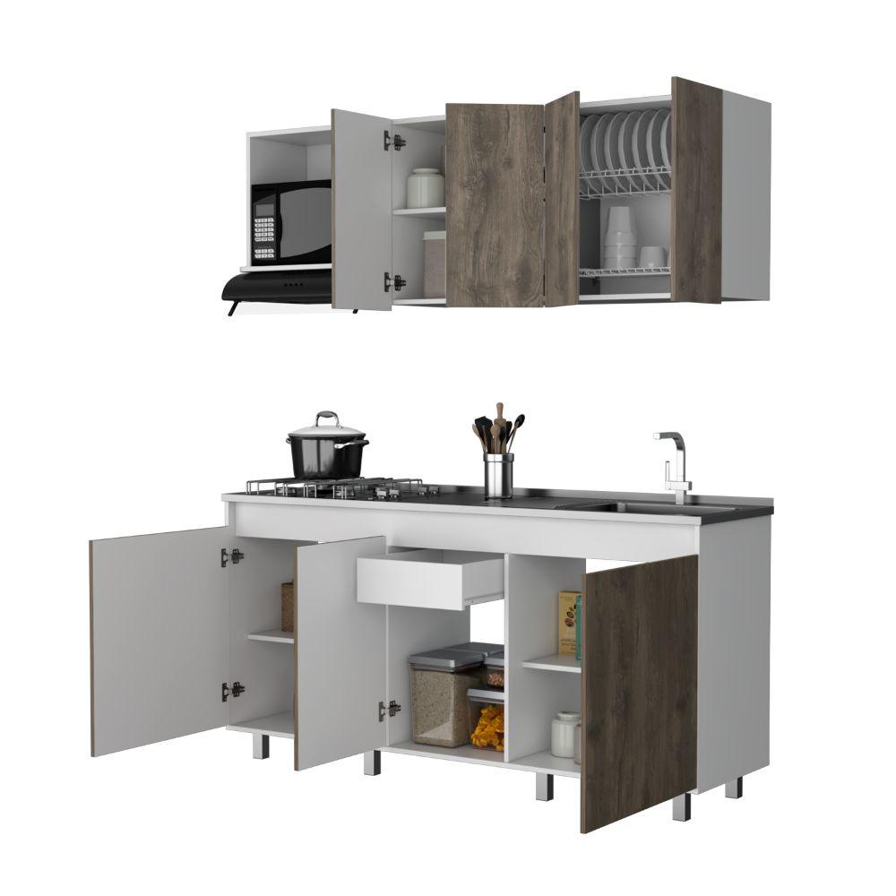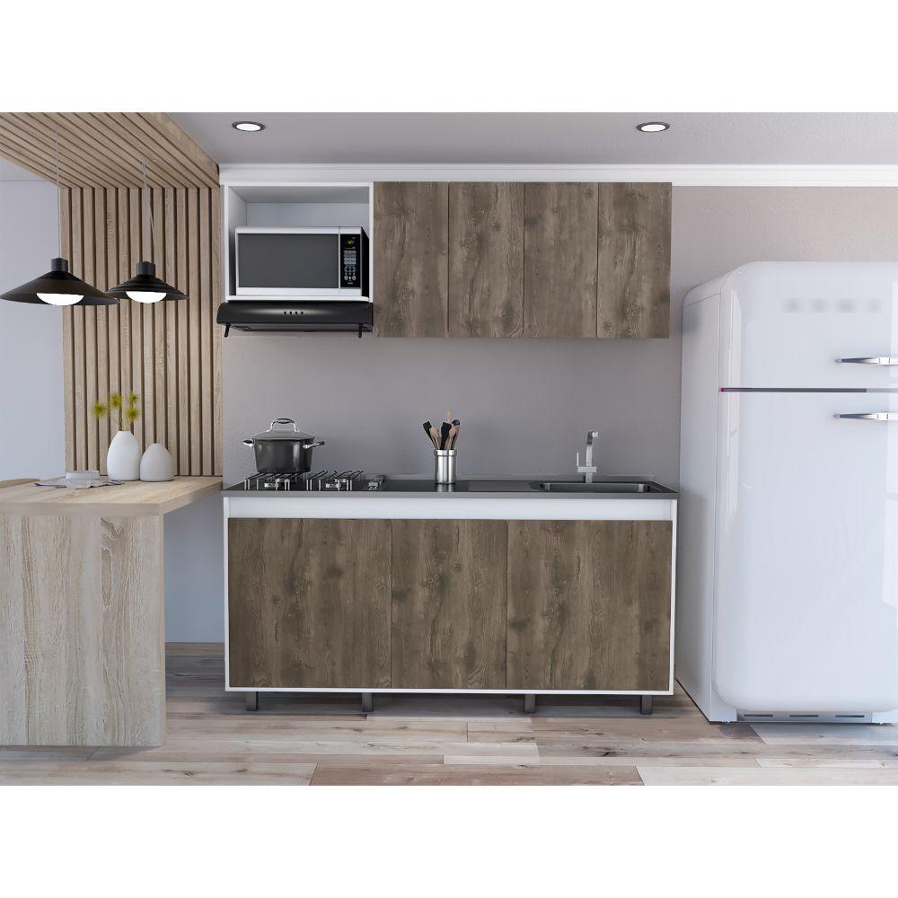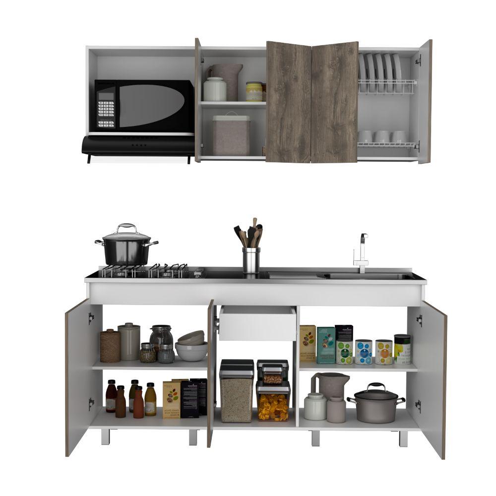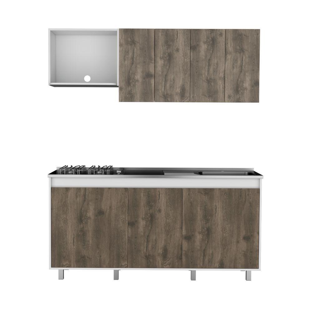 Cocina Integral Zurelly, Nogal y Blanco, Incluye Mesón Derecho en Acero