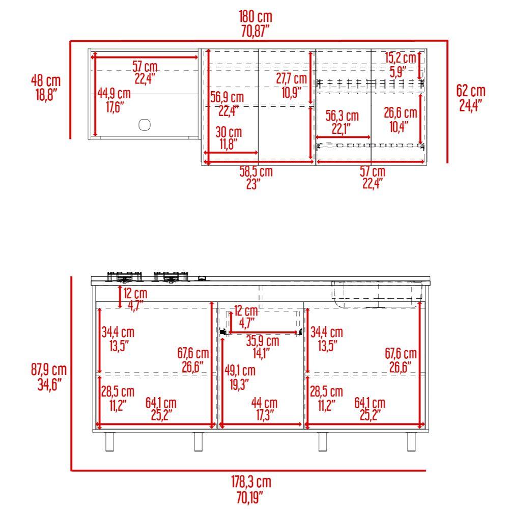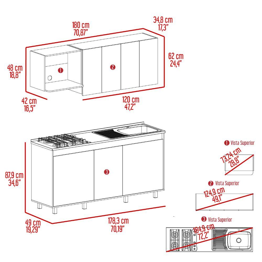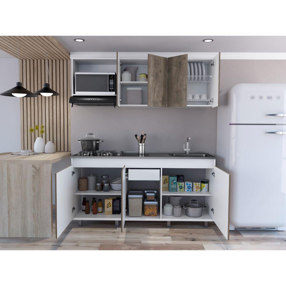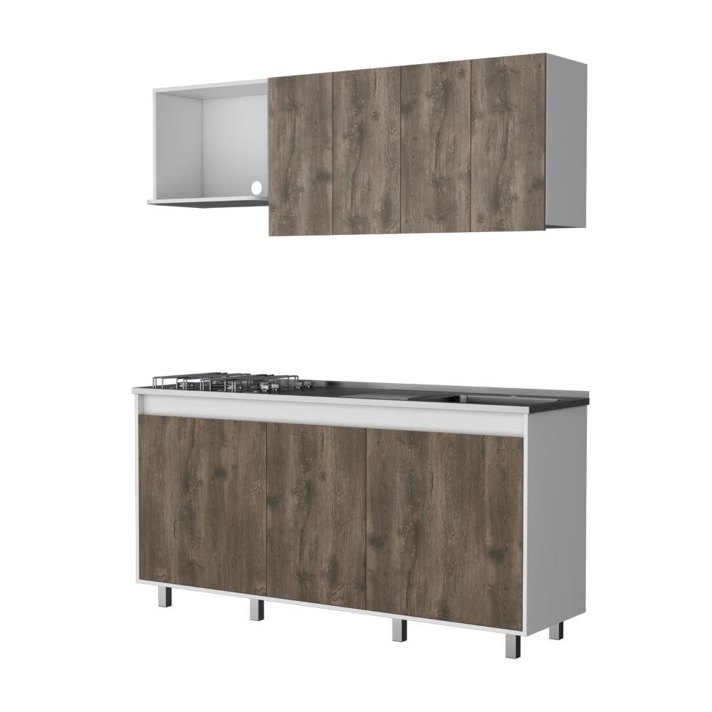Cocina Integral Zurelly, Nogal y Blanco, Incluye Mesón Derecho en Acero