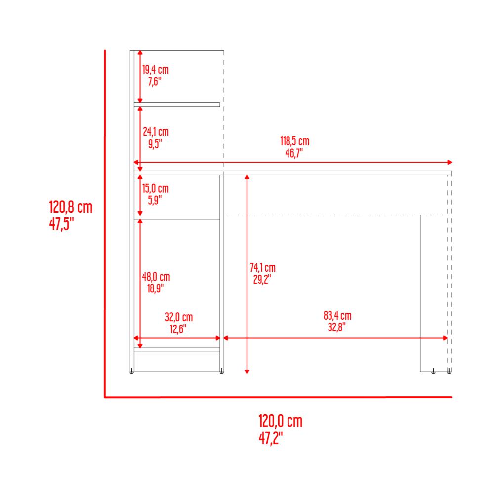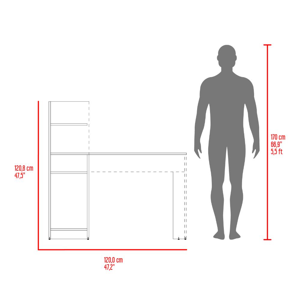 Escritorio Gamer, con amplia superficie de trabajo, 4 entrepaños para ubicar libros y/o elementos decorativos.