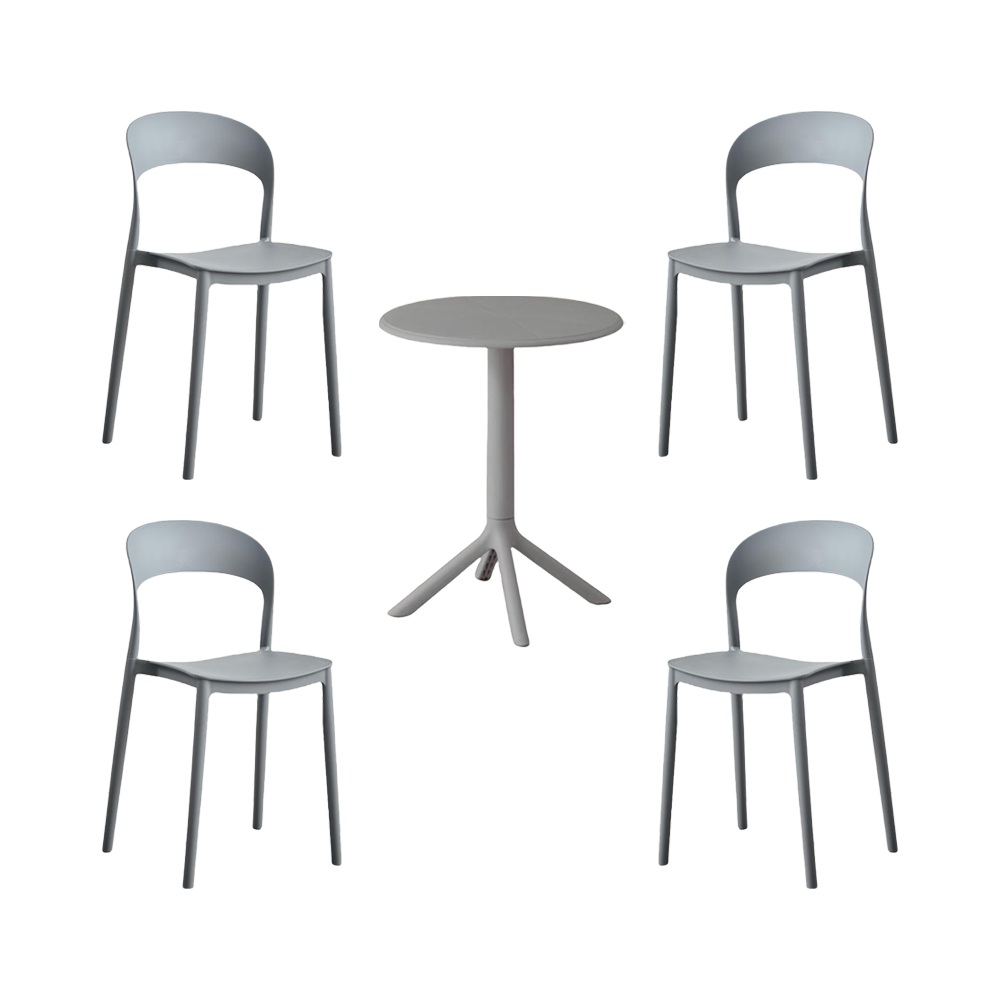 Combo Nordica, Incluye Mesa Redonda y 4 Sillas en Color Gris Oscuro