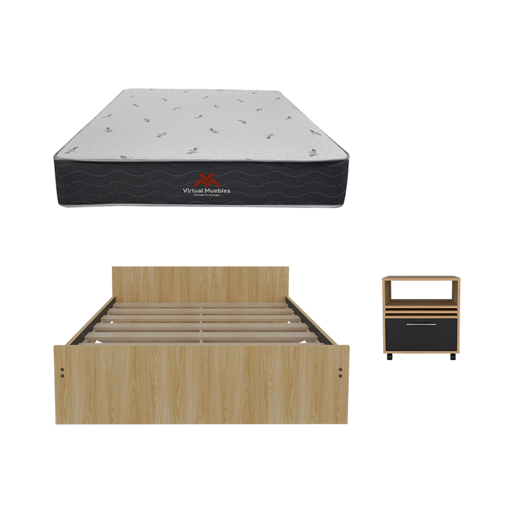 Combo para Habitación Boust, Incluye Cama Doble - Colchón y Mesa de Noche