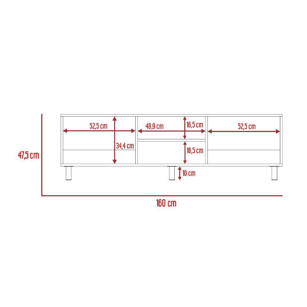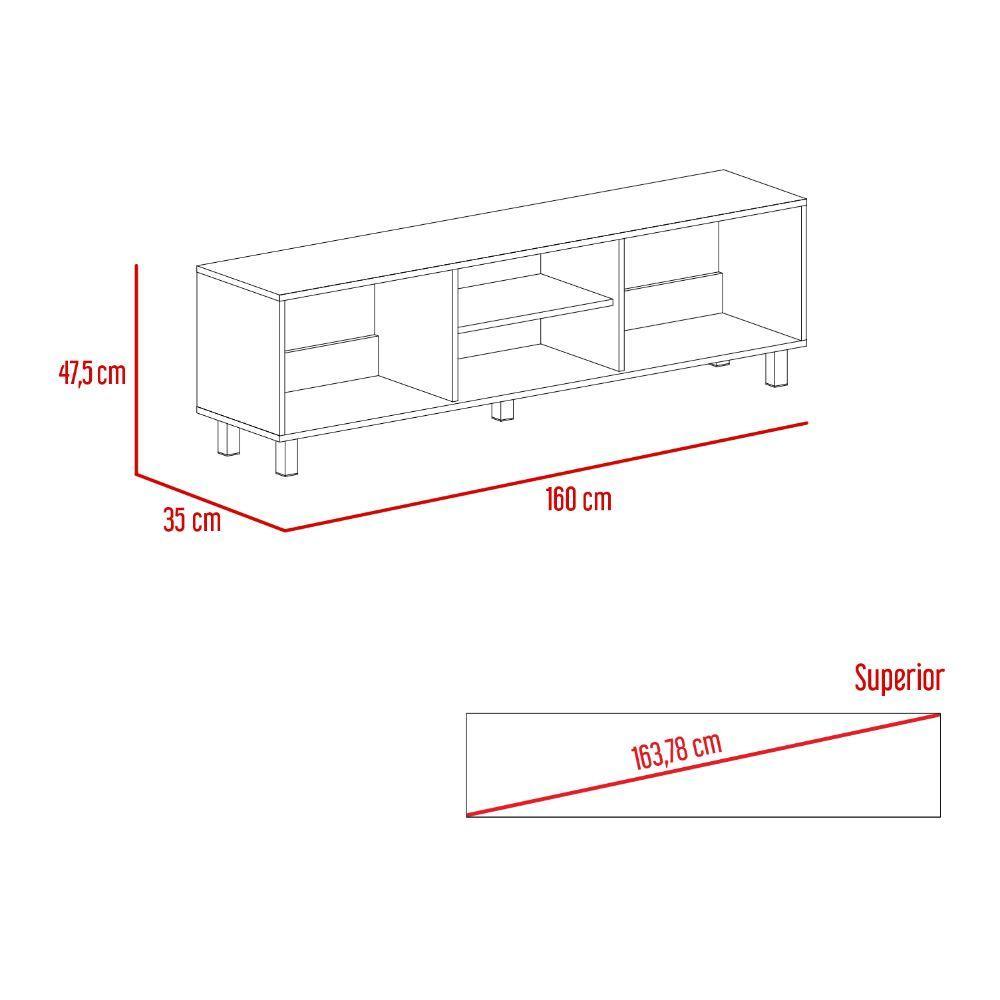 Mesa para TV de 70". cuenta con un entrepaño y cuatro compartimentos para almacenar objetos. Color Wengue y Café Claro