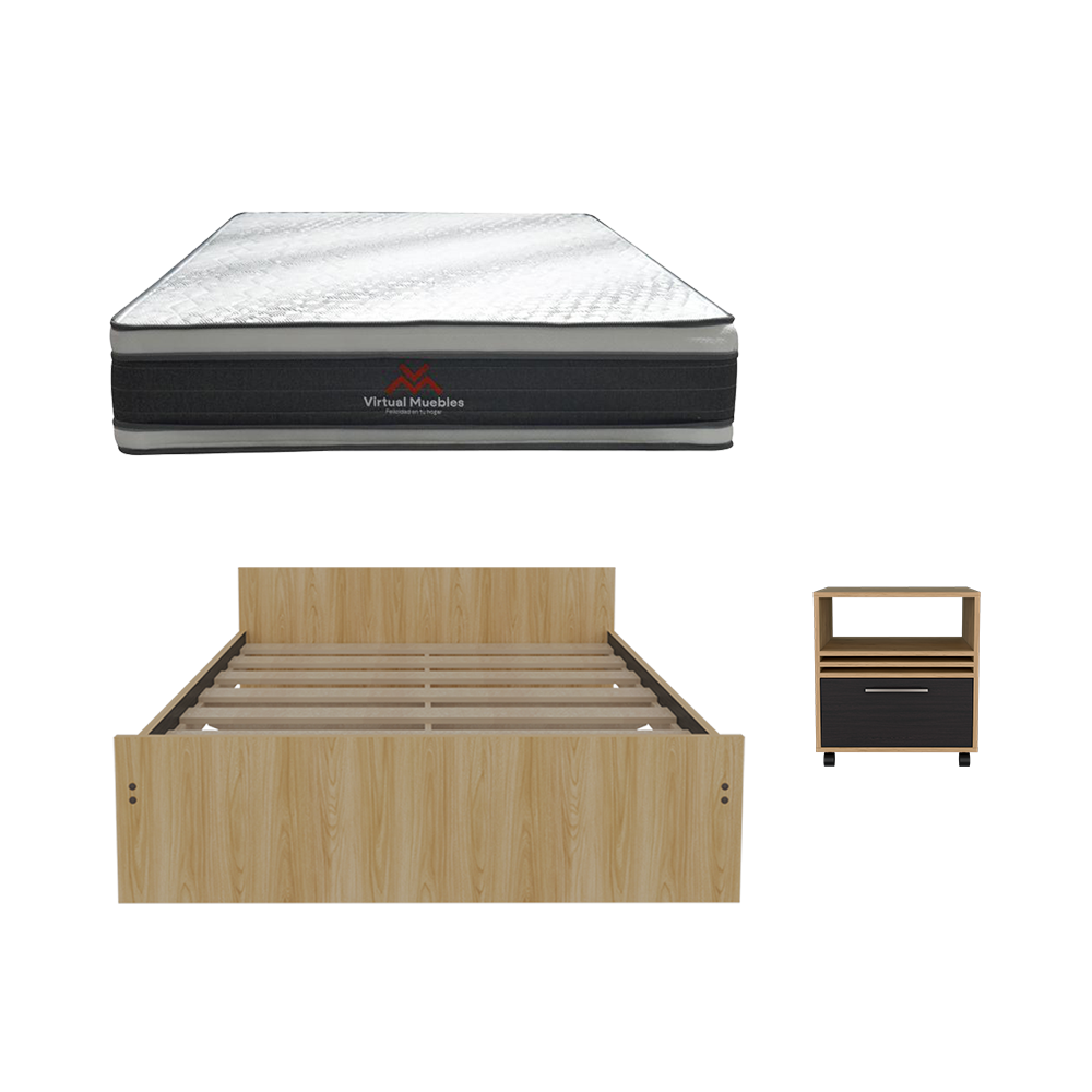 Combo para Habitación Pikman, Incluye Cama Doble - Colchón y Mesa de Noche