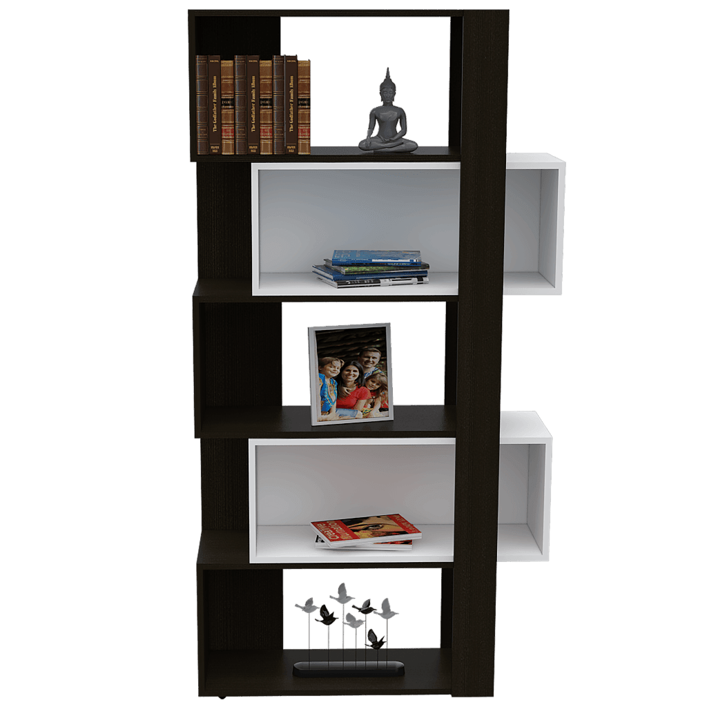 Biblioteca, con variedad de entrepaños. Color Wengue y Blanco