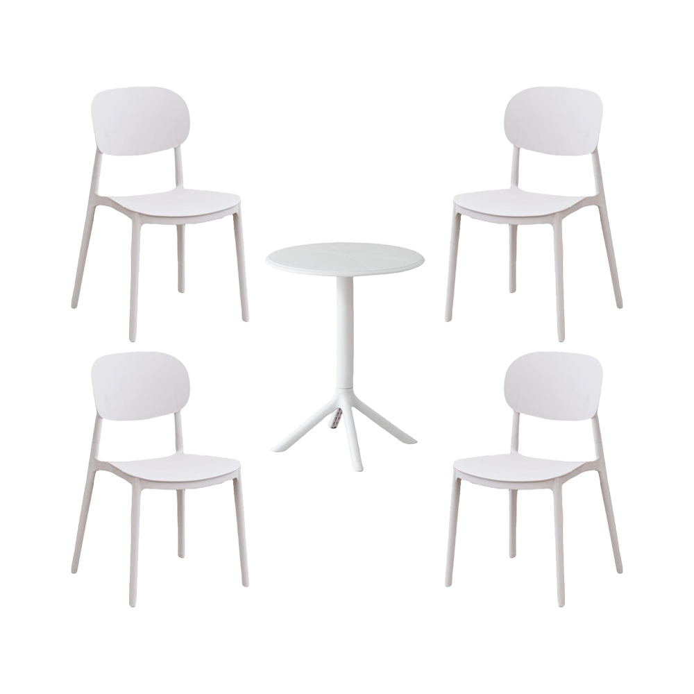 Combo Vertice, Incluye Mesa Redonda y 4 Sillas en Color Blanco