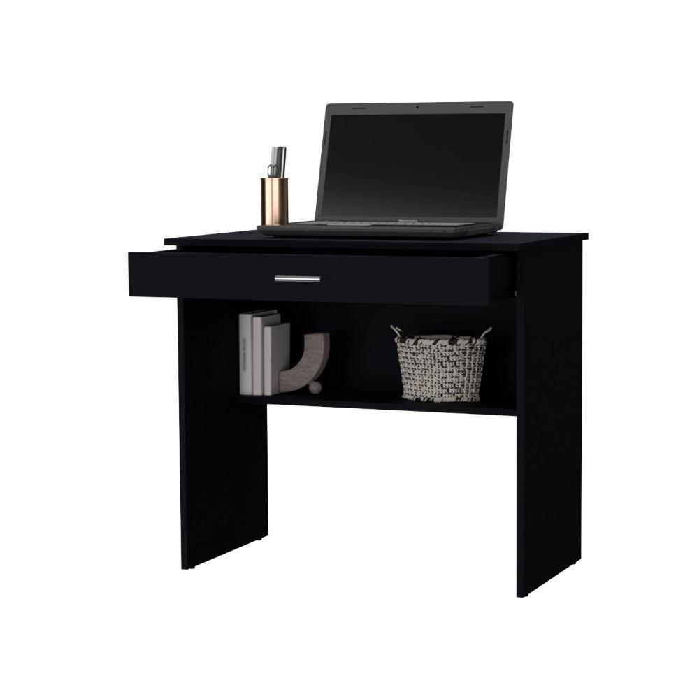 Escritorio, con cajón multiusos de correderas metálicas deslizables, y espacio para artículos de estudio, trabajo o entretenimiento.