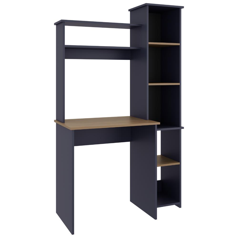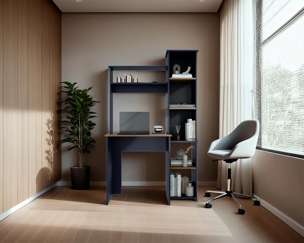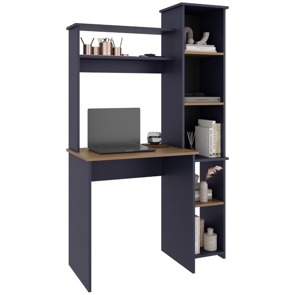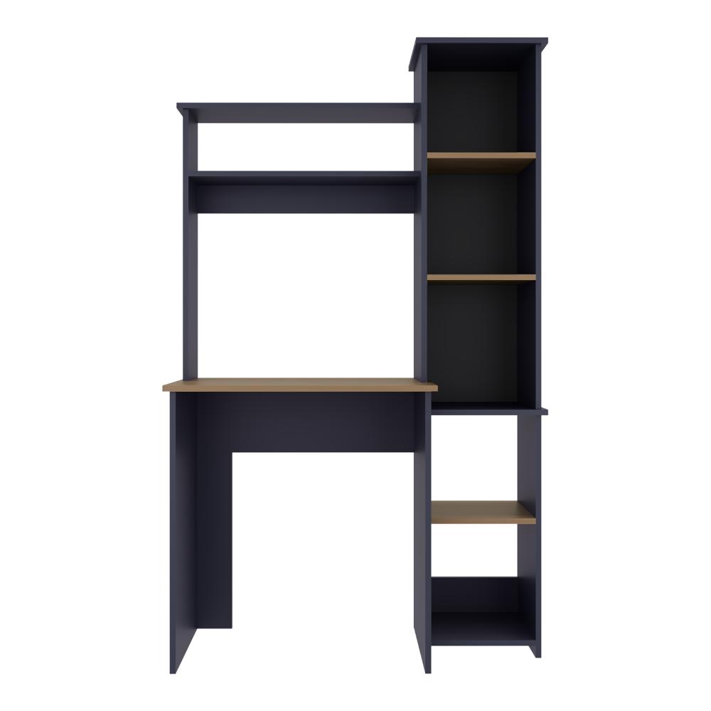 Escritorio Cerín, Azul y Kronos Fresno, con Seis Entrepaños y Gran Espacio de Almacenamiento
