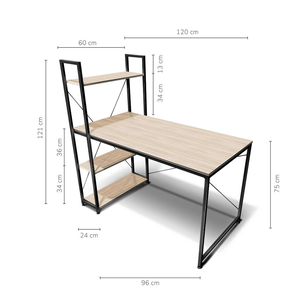 Dimensiones: 120 cm largo x 75 cm alto escritorio / 121 cm alto con estantes x 60 cm ancho