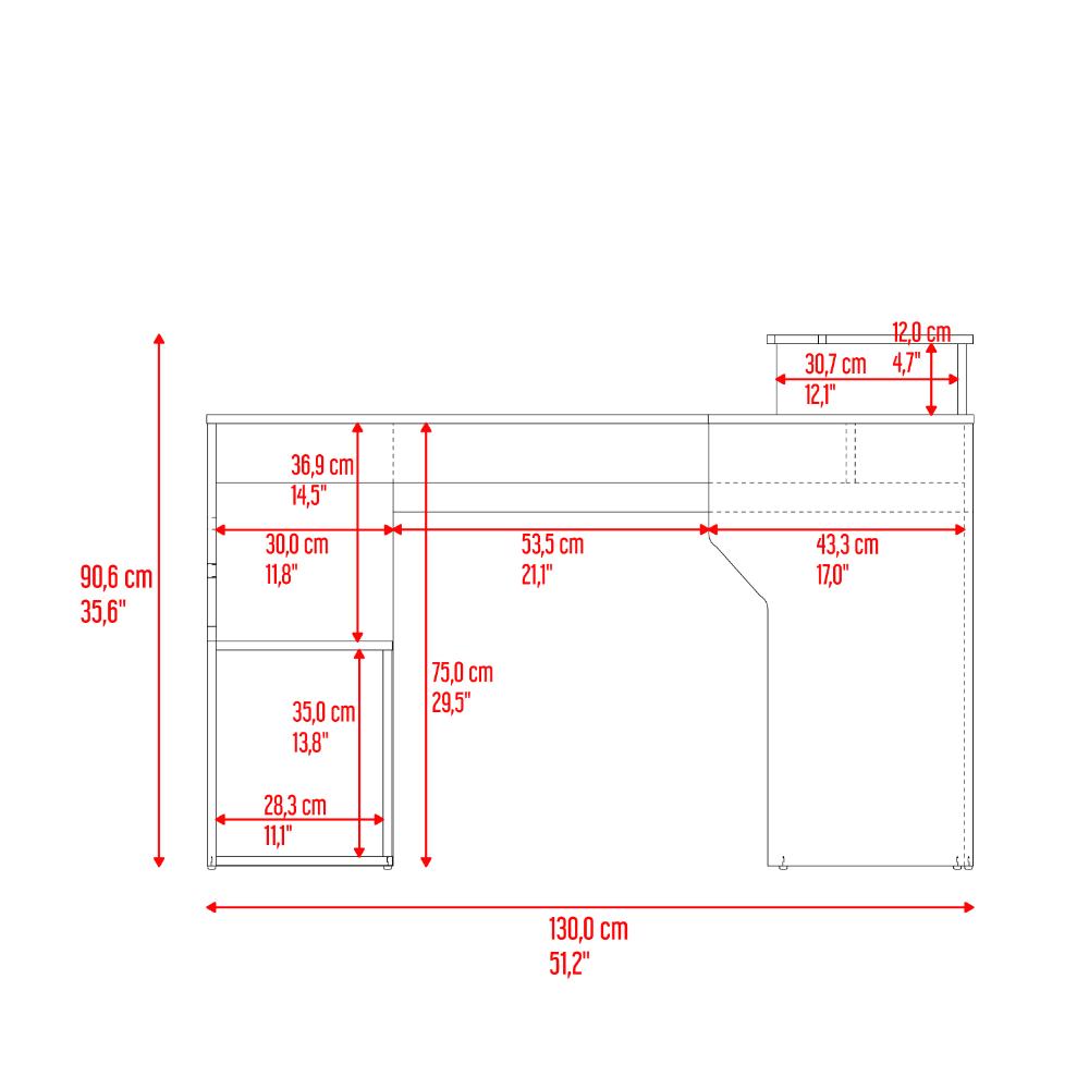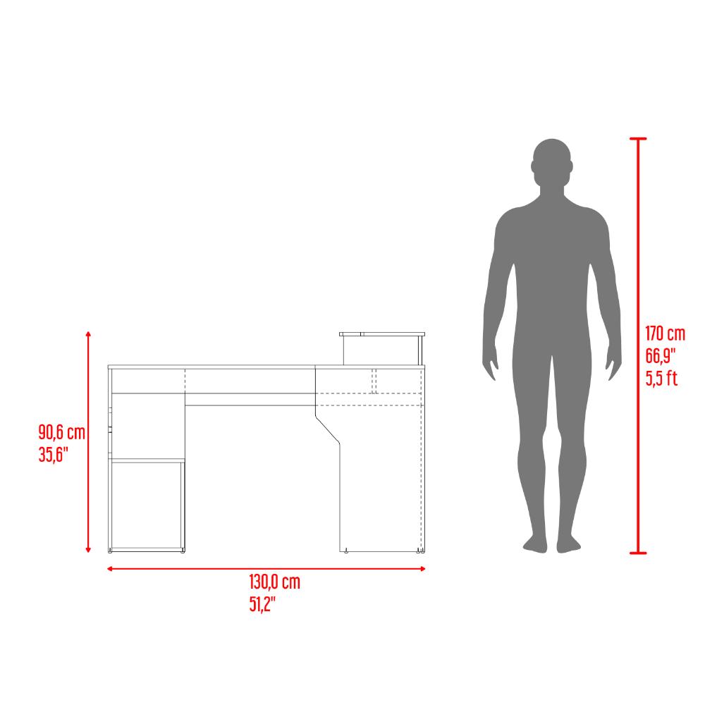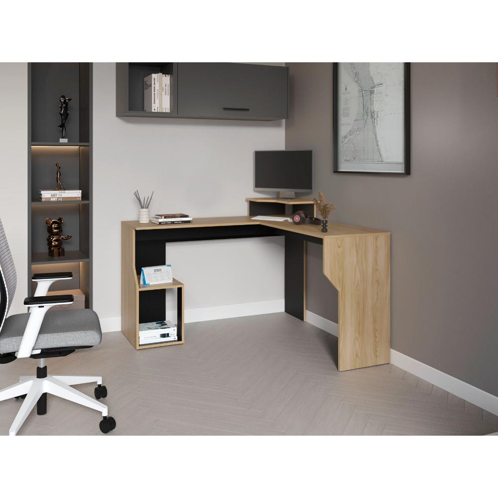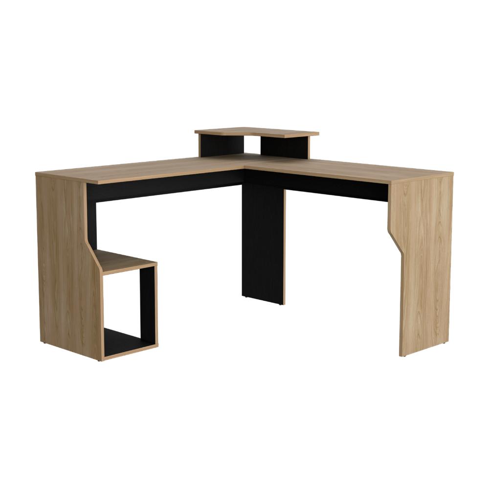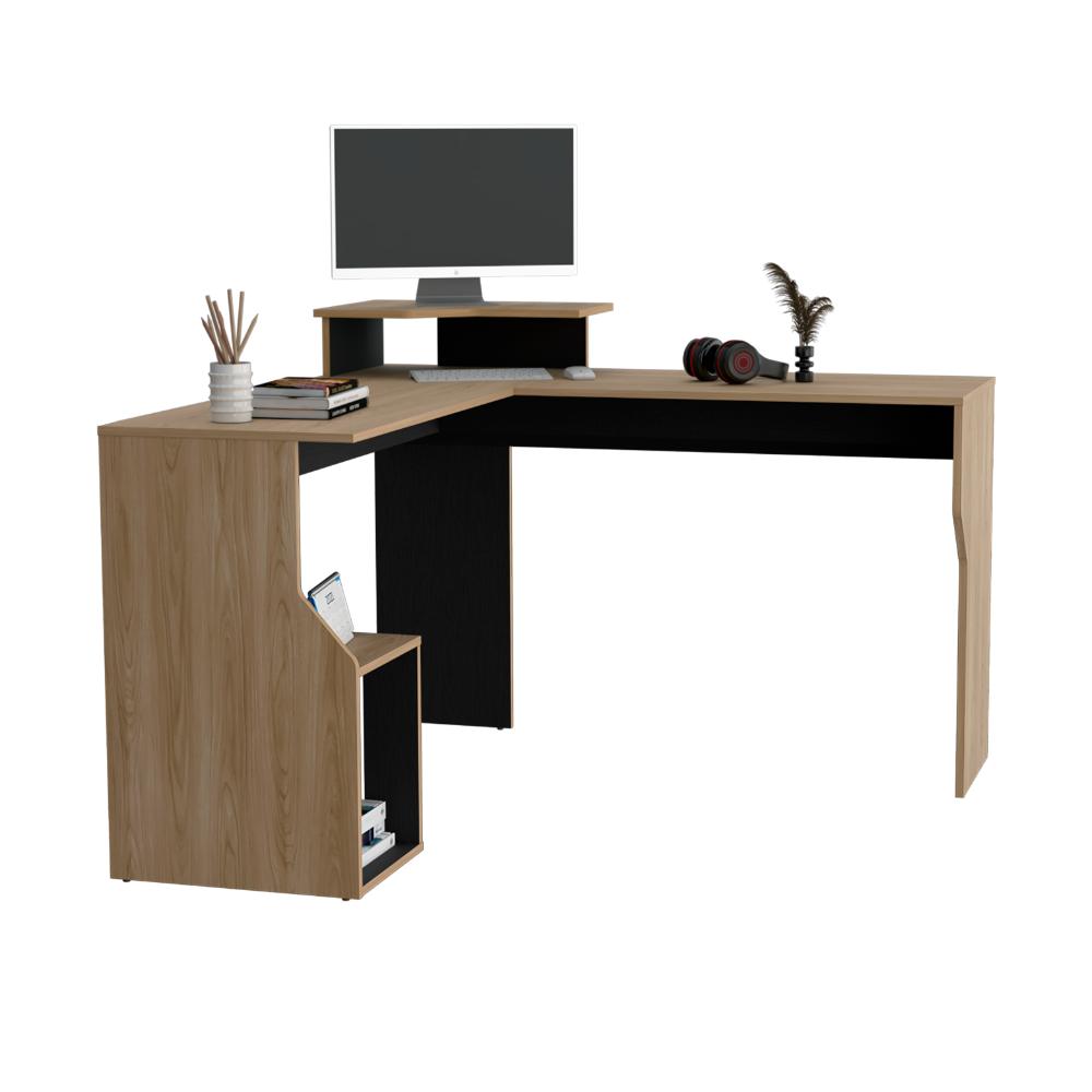 Escritorio En L Danom, Fresno Europeo y Wengue, con amplia superficie y base para monitor