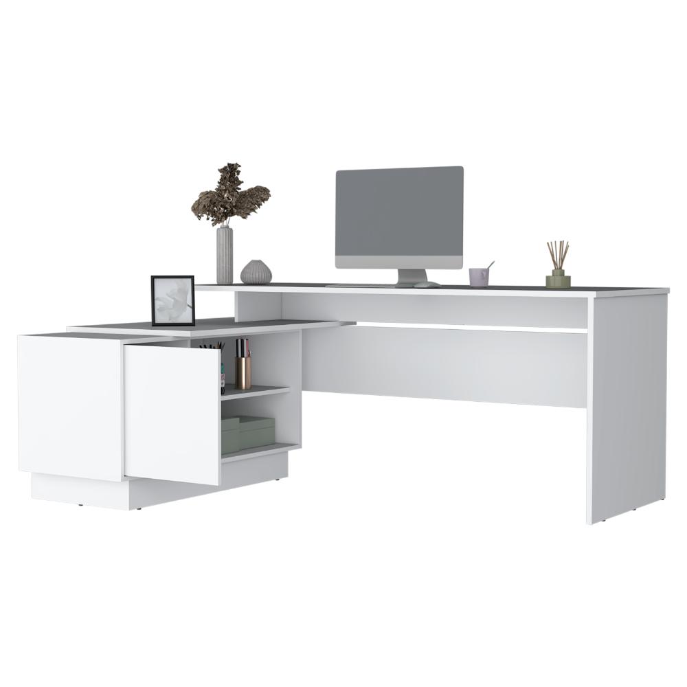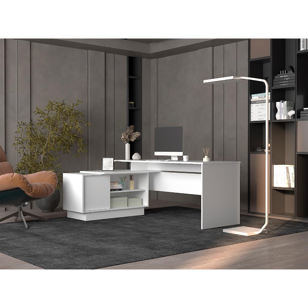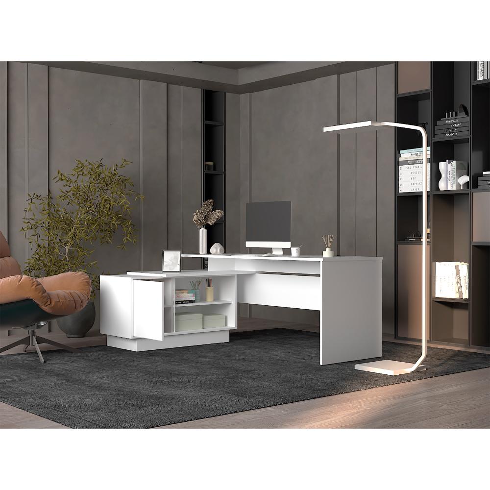 Escritorio en L Emery, Blanco Duqueza, con amplia superficio de trabajo ZF