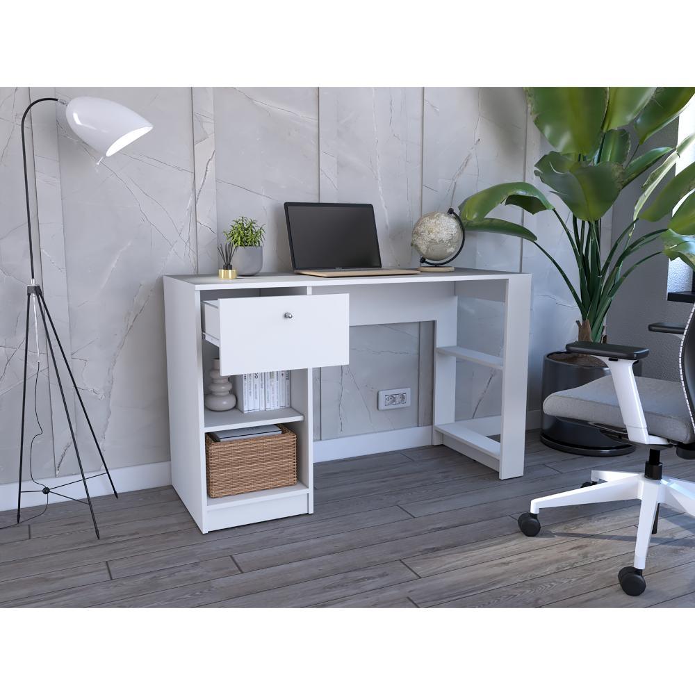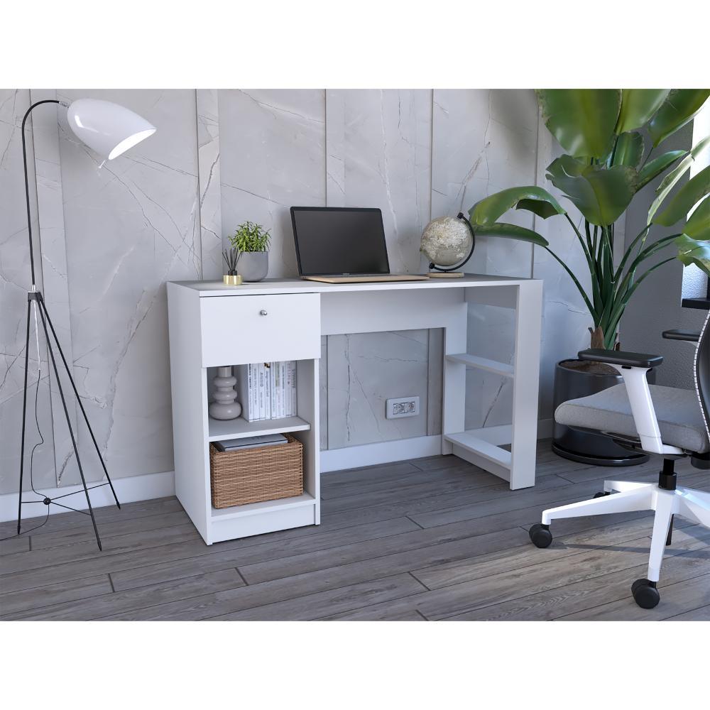 Escritorio Esmery, Blanco Duqueza, con un cajón y facil armado