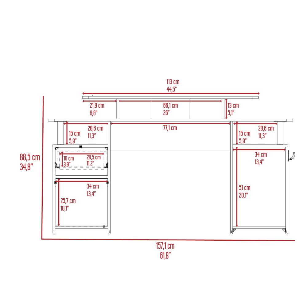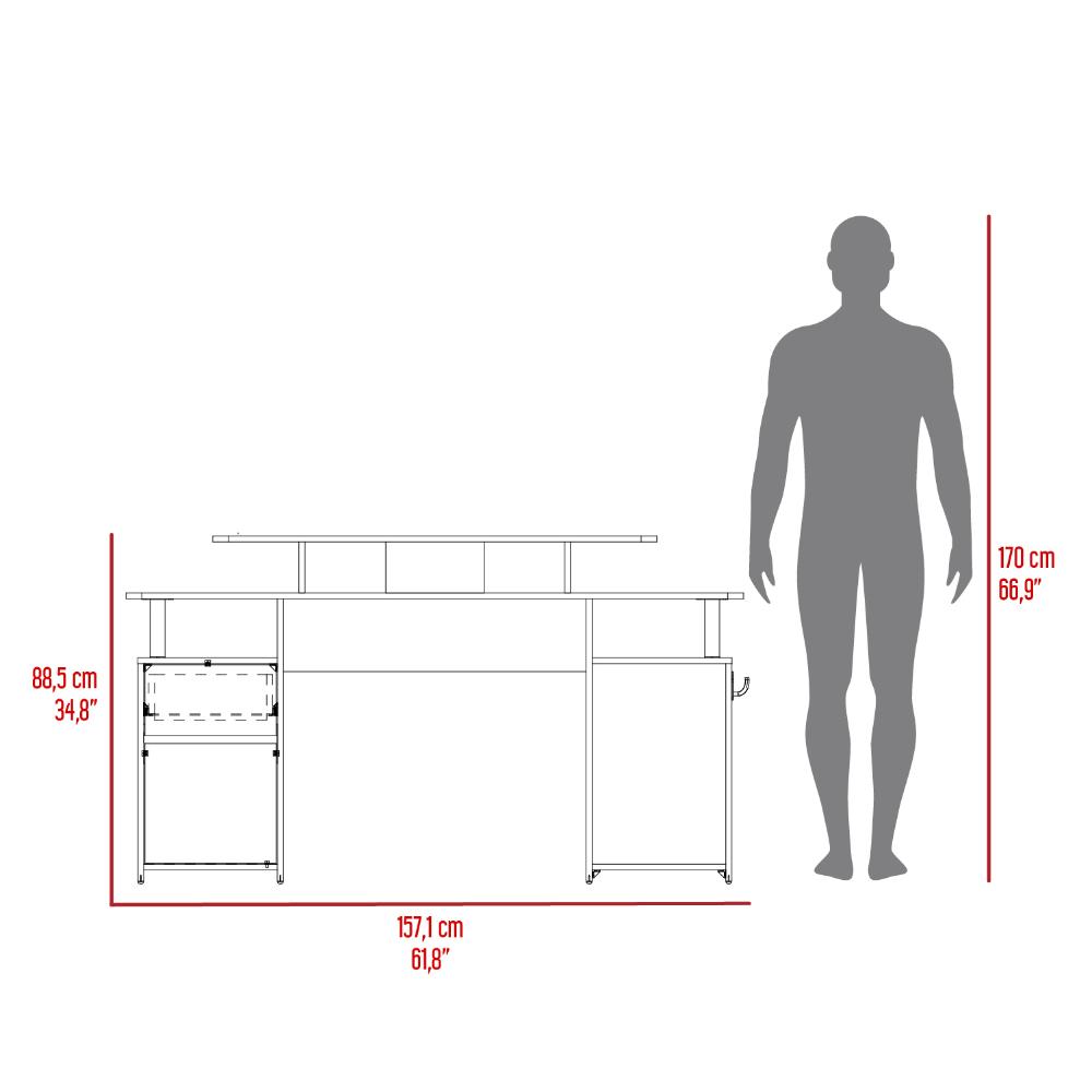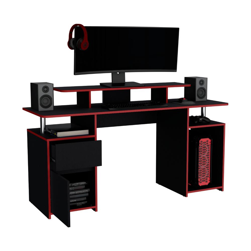 Escritorio Gamer Kein 2, Wengue y Rojo, con Espacio Adicional para Pantallas