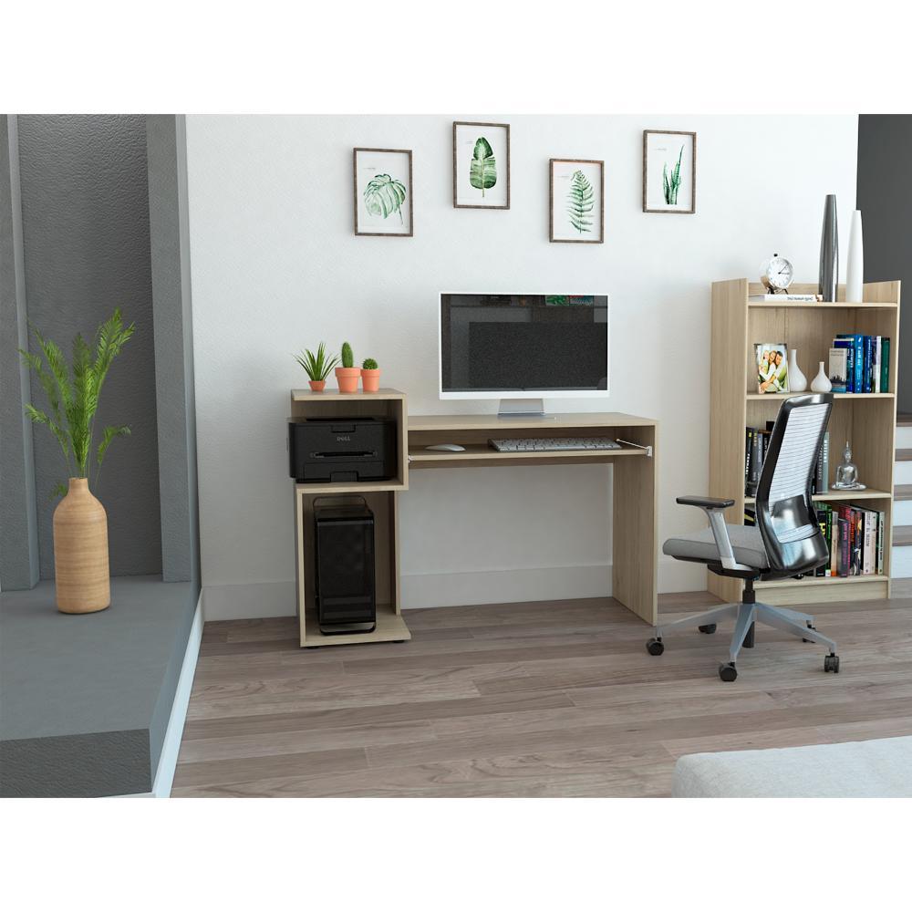 Escritorio Izan, Beige, con Bandeja Porta Teclado Deslizable y Espacio Para Artículos de Estudio